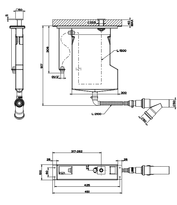 拉出手淋浴排水套件,瓷砖墙安装。不合适的项目 01669, 01658, 01663 和 01664.