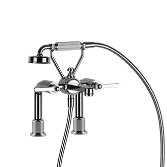 带支架、喷口、1,50 米柔性软管和防石灰石手淋浴的双孔浴缸搅拌机。