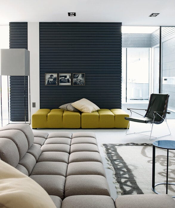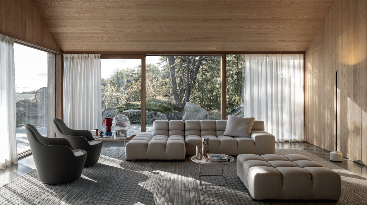 Tufty-Time 沙发系列是 B&B Italia 最成功的产品之一,它为模块化、舒适和可拆卸沙发套的主题找到了有效的答案。Tufty-Time 模块化系统以脚凳作为基本件开始,然后伴随着中央、角落和带有低或高扶手的终端元件。这些元素用于发明传统沙发、带贵妃椅的沙发、转角沙发和提供 360° 座椅解决方案的岛元素。Tufty-Time 在其更突出的深度中变得舒适,成为一个聚会场所,一个人们可以放松身心的温馨避难所。凭借其织物或皮革内饰,Tufty-Time 为传统的 Chesterfield 和 capitonné 沙发带来更现代的风格,带来更自由、更休闲的生活方式。