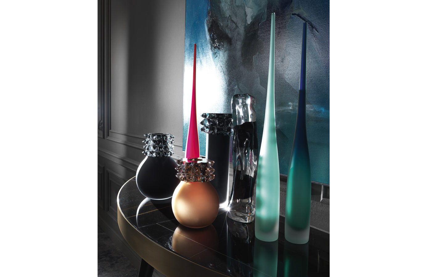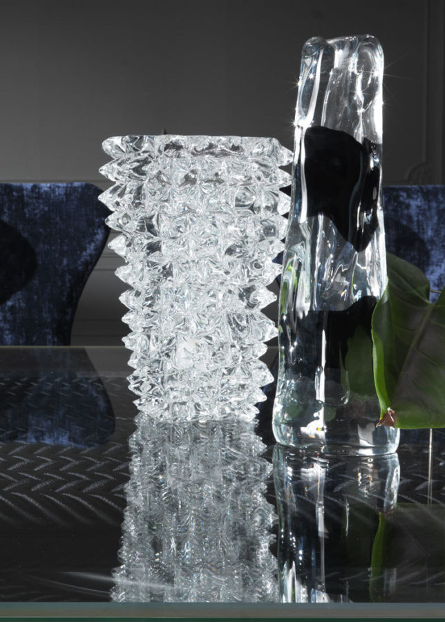 吹制的穆拉诺玻璃花瓶。提供白色/黑色
