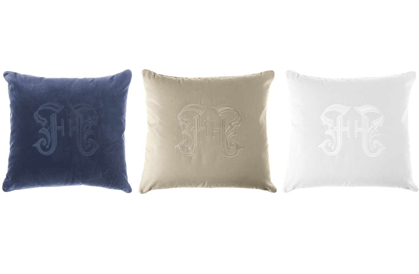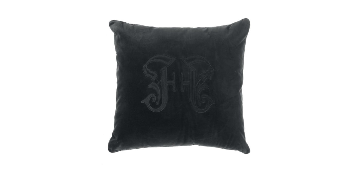 天鹅绒靠垫,彩色刺绣哥特式徽标。有不同的颜色可供选择 - 黑色,蓝色,米色,白色 -