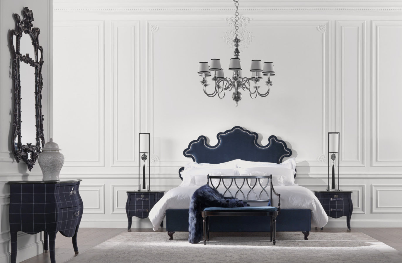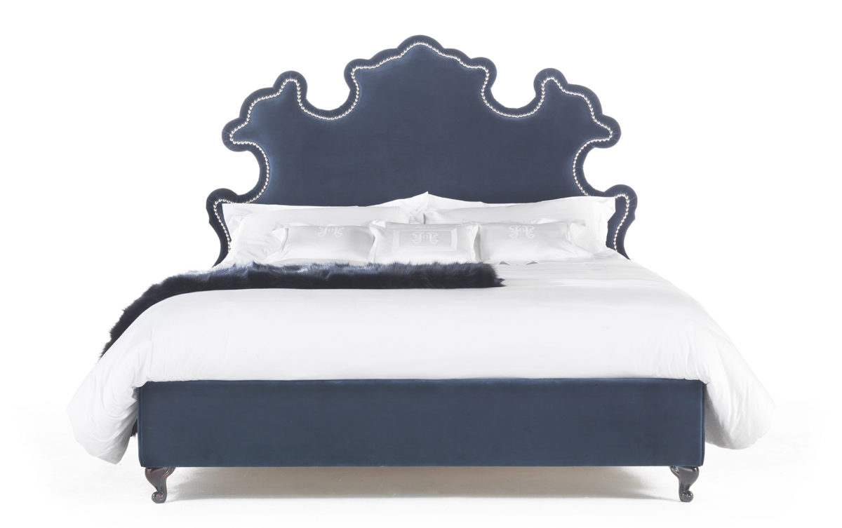 一张重要而引人注目的床,其特点是装饰性床头板,其不规则的周长与对比鲜明的铆钉的存在相得益彰。一种充满服装细节的美学语言,结合了经典和现代元素,完美补充了充满个性和折衷主义和原创风味的设置。结构采用多层杨木、山毛榉木和泡沫。皮革猫的内饰。|L.14.13. 黑漆处理的支腿。装饰性金属钉头。