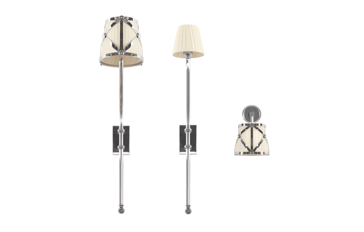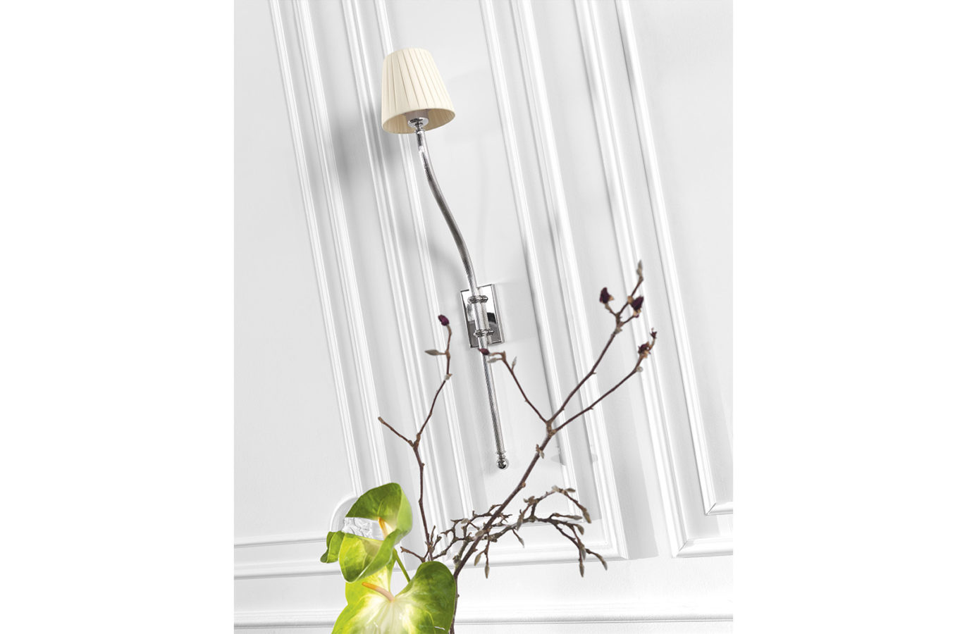 黄铜和铁结构的壁灯。镍或金饰面。浅色调与象牙色褶皱蓬贝面料。