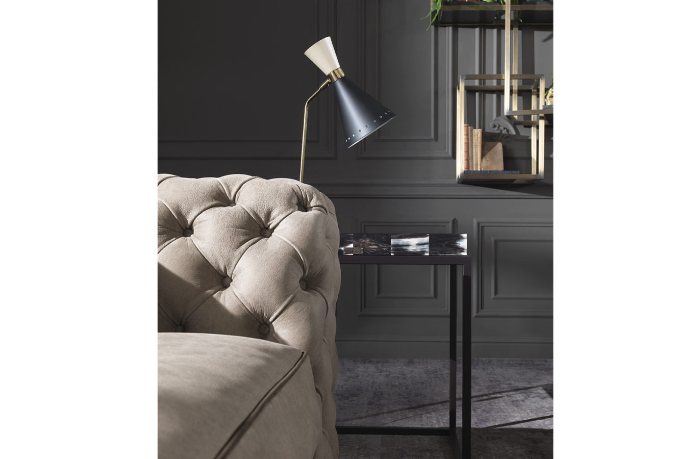 密尔沃基台灯的清醒优雅,灵感来自五十年代,并配有珍贵的大理石底座,由于其东方照明,进一步突出了Gianfranco Ferré家具的美丽。黄铜结构台灯。光泽表面处理。金属灯罩,黑色和白色饰面。