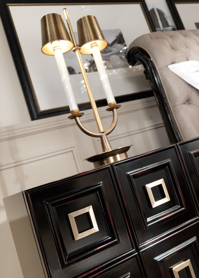 Perry 床头柜的特点是木材上的脱压色调、略带古董的饰面和黄铜细节,以其复古魅力为您的布置锦上添花。床头柜采用山毛榉木结构。黑色漆面。金属手柄。