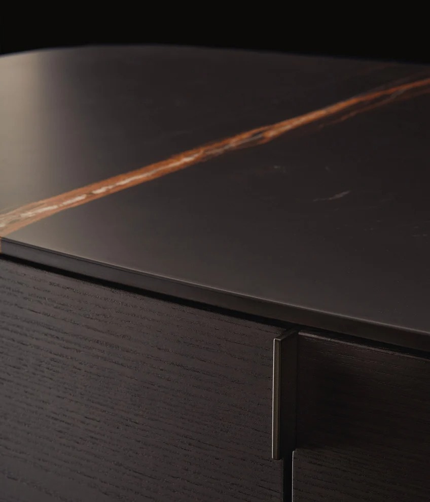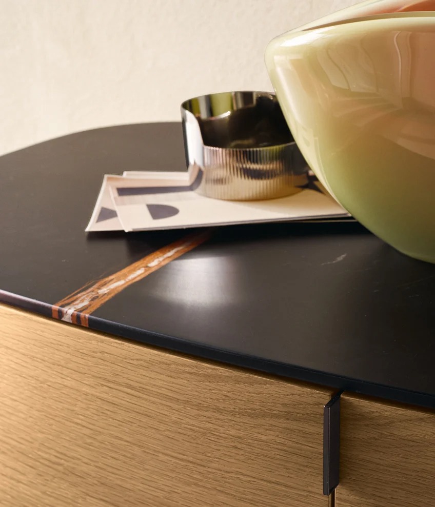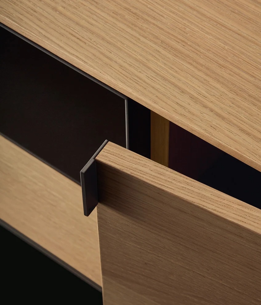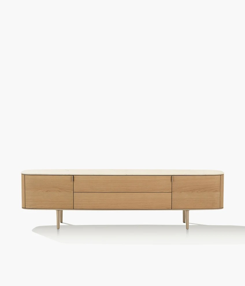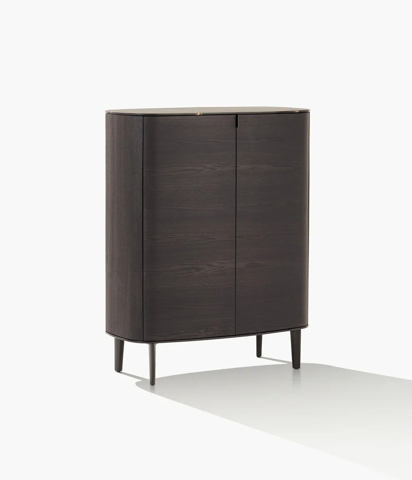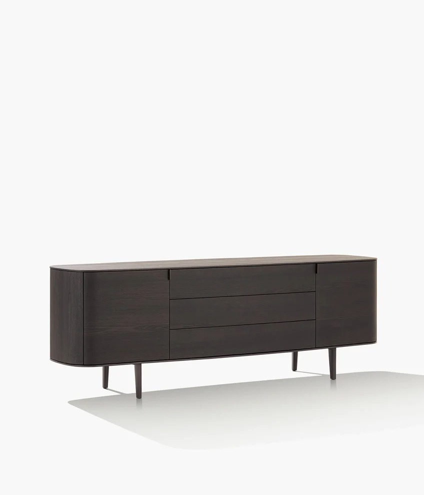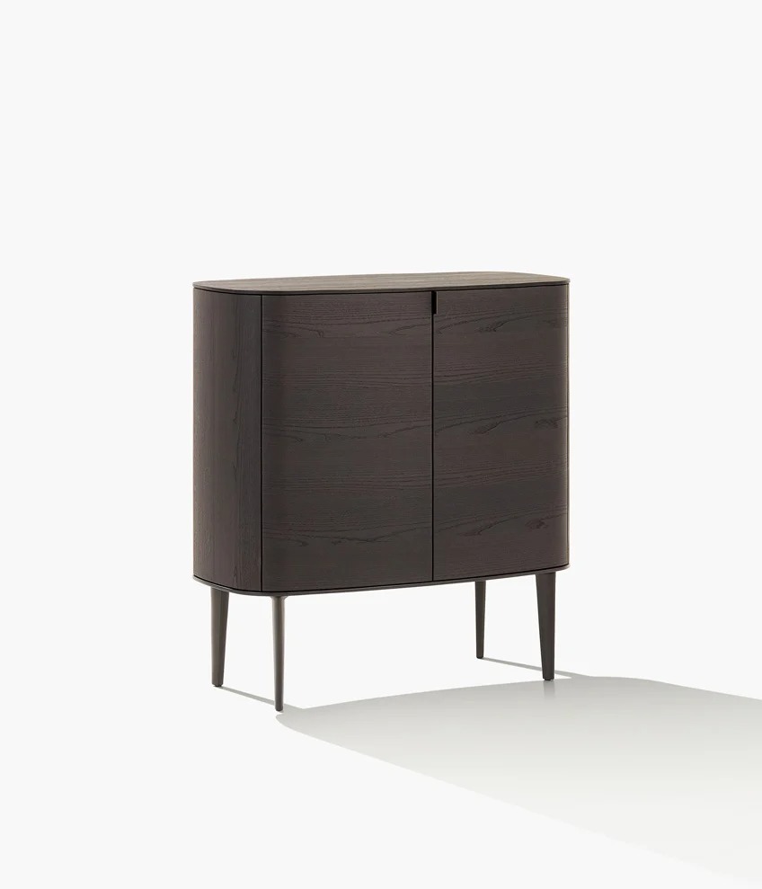 交响乐是一个餐具柜的集合,通过精细的材料和精确的工艺来表达线条的简洁。餐具柜的形状是椭圆形的,通过木材表面处理得到了增强。该系列包括不同高度和尺寸的元素,从带门的高版本和中版本到带抽屉或带抽屉和开敞隔间的低版本,所有元素都在带脚的底座上。