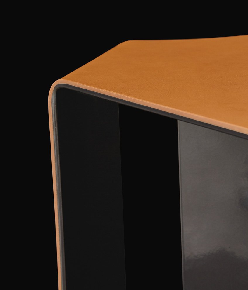 这张咖啡桌也是巴黎首尔系列的一部分。金属结构和外部皮革覆盖,它站在沙发和扶手椅旁边,让你需要的一切在你的指尖。