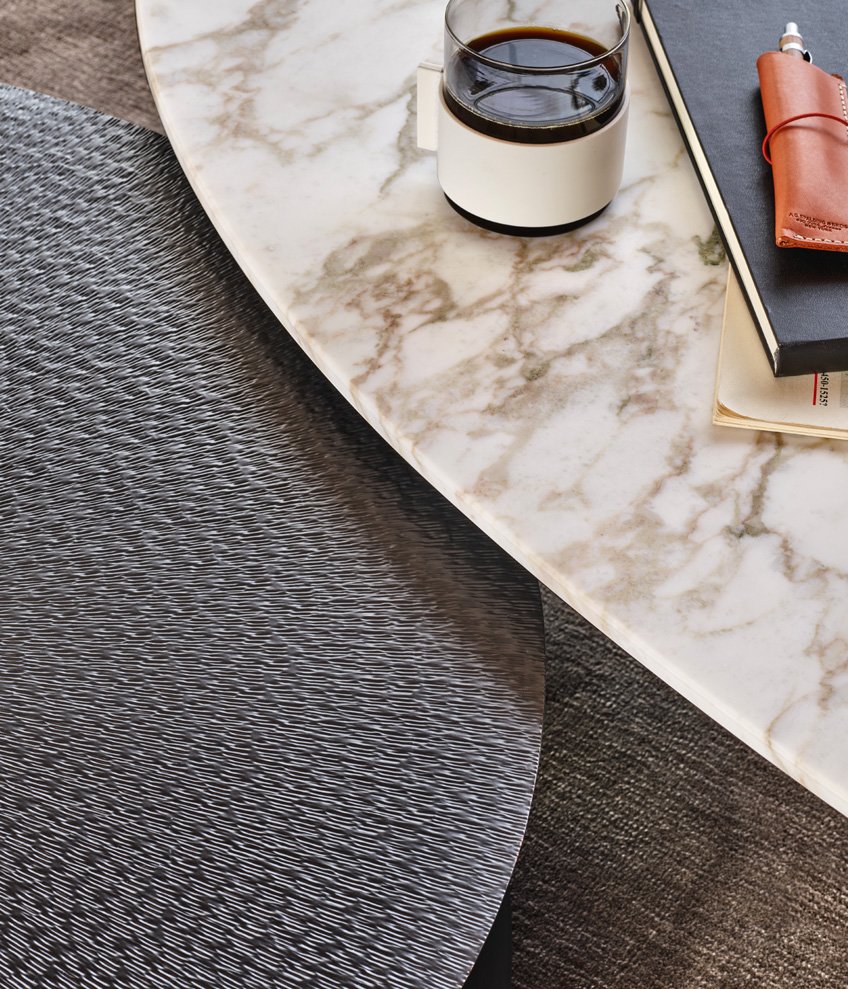 Soori咖啡桌的灵感来自巴厘岛及其文化,尤其是印尼田园诗般的岛屿上村庄使用的传统花瓶,这款咖啡桌具有独特的审美魅力,无论在客厅还是卧室都很显眼。它有三种尺寸的金属,带有古铜色表面,最小的模型也有光泽或亚光漆表面。