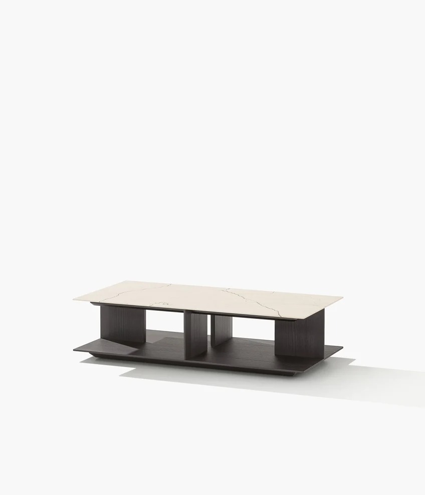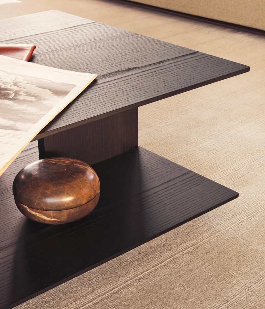 材料和形状之间的微妙平衡塑造了Westside系列的咖啡桌,它完成了相同的沙发系统。咖啡桌有三个版本,有不同的饰面:带抽屉或开放式隔间的咖啡桌,带交叉金属底座的咖啡桌,以及放在沙发旁边的咖啡桌。