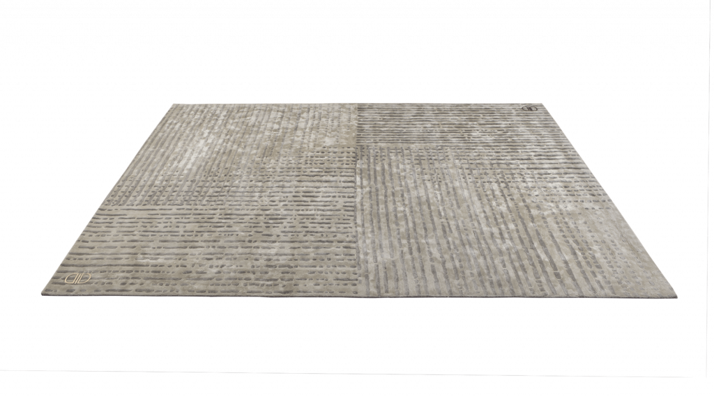 手工簇绒,手工整理。材质:60% 羊毛、20% 棉、20% 粘胶纤维。背面涂有乳胶,内衬棉。每平方米净重4.5公斤。黄铜细节。