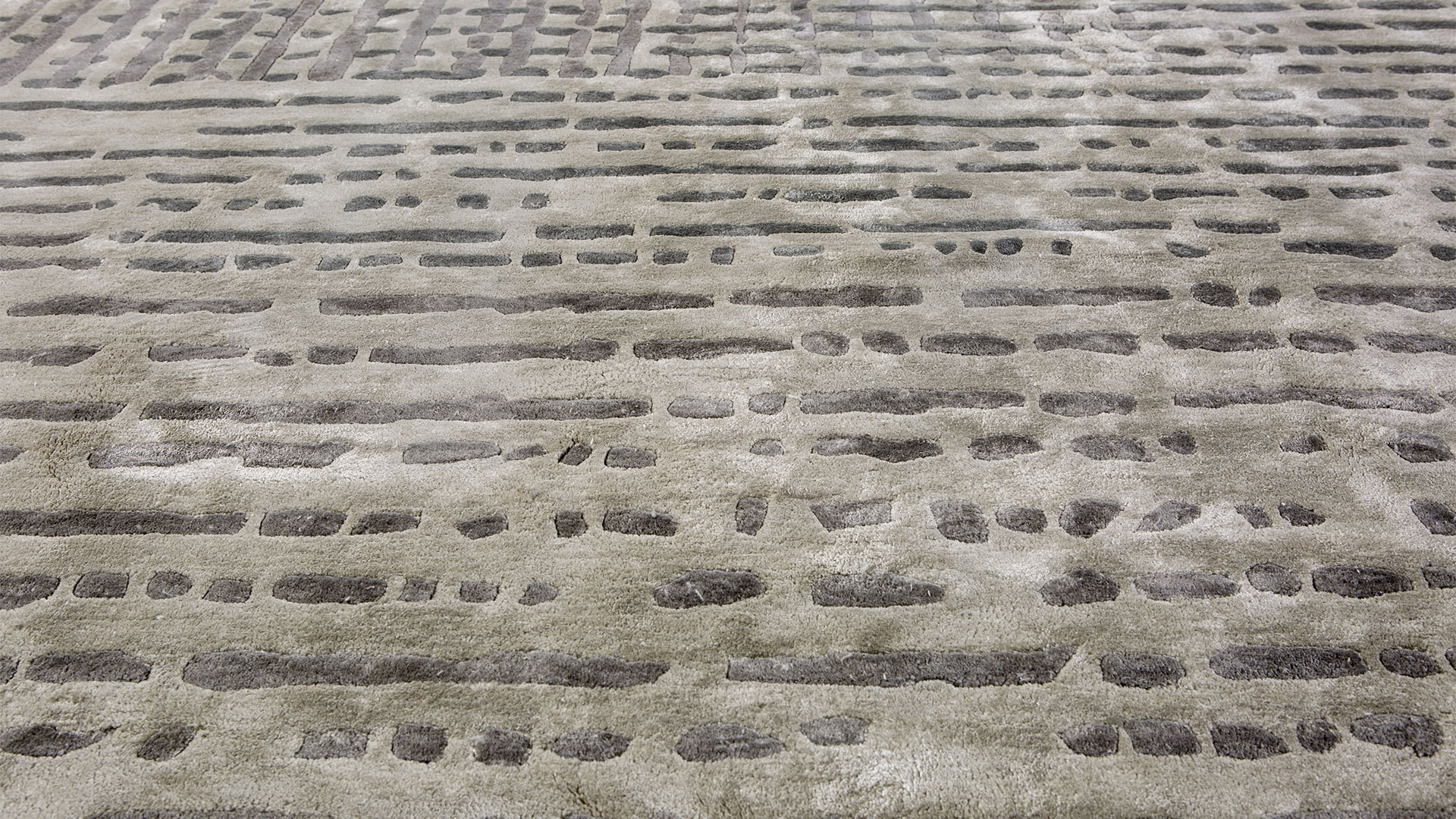手工簇绒,手工整理。材质:60% 羊毛、20% 棉、20% 粘胶纤维。