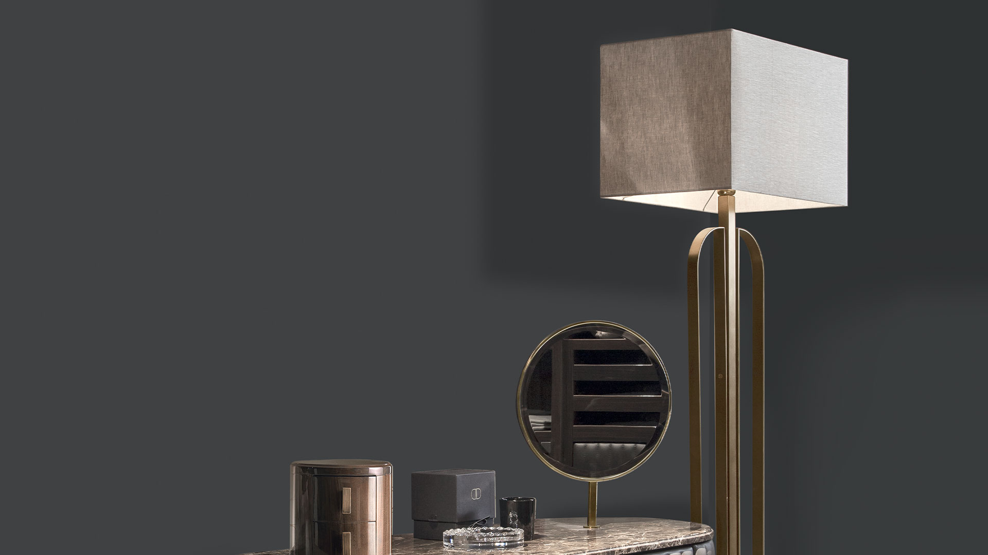 Brand 台灯将极具辨识度的 Daytona 双 D 融入抛光黄铜结构中,这是一种曲线游戏,赋予整体珍贵、体积和轻盈感。
