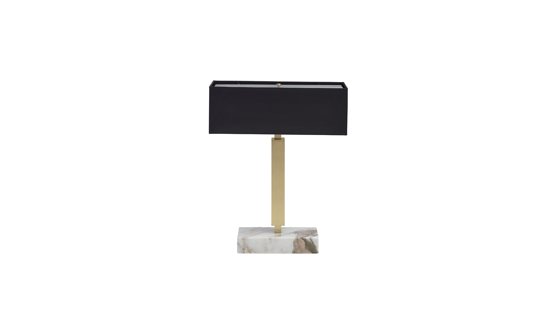 独特的元素当然是金色的 Calacatta 大理石底座,结合精细的缎面黄铜结构和具有精致几何形状的黑色缎面灯罩,使其成为肯定和成功的象征。