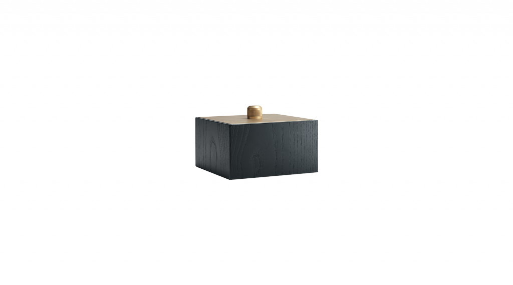 白蜡木胶合板结构,亚光黑色饰面,缎面黄铜盖。