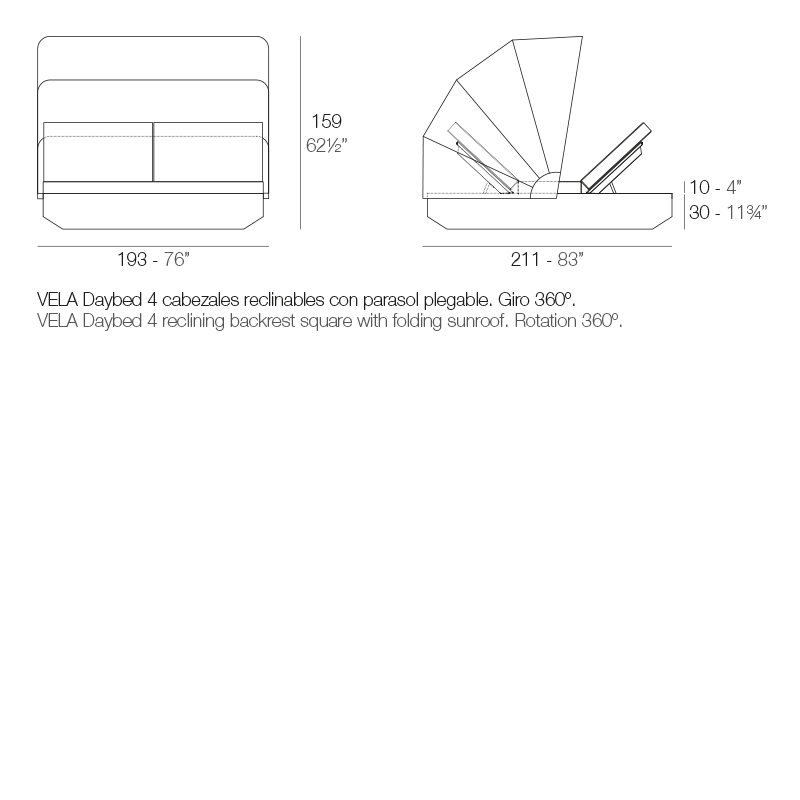 VELA DAYBED WITH 4 RECLINING BACKRESTS AND FOLDING CANOPY
