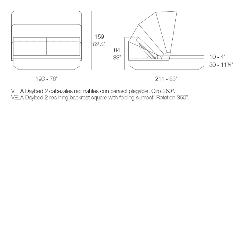 VELA SQUARE DAYBED WITH 2 RECLINING BACKRESTS AND FOLDING CANOPY