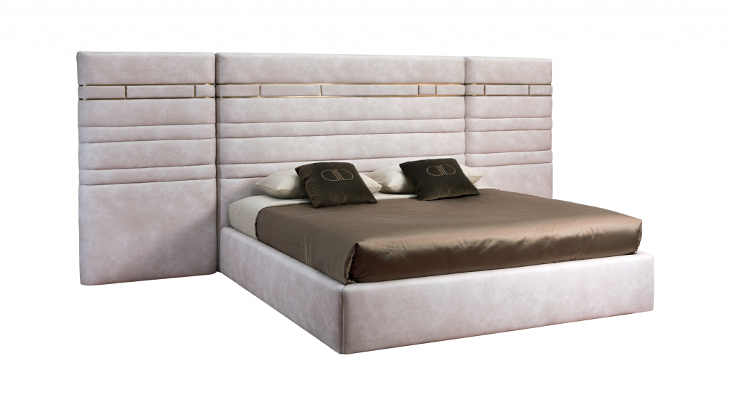胶合板结构,用各种密度的橡胶填充,用涂漆钢方格固定。带有水平板条的床头板,嵌入抛光黄铜饰面。准备支持网络。织物或皮革内饰。