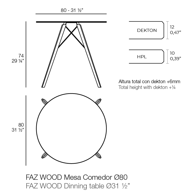 FAZ WOOD DINING TABLE Ø80X74
