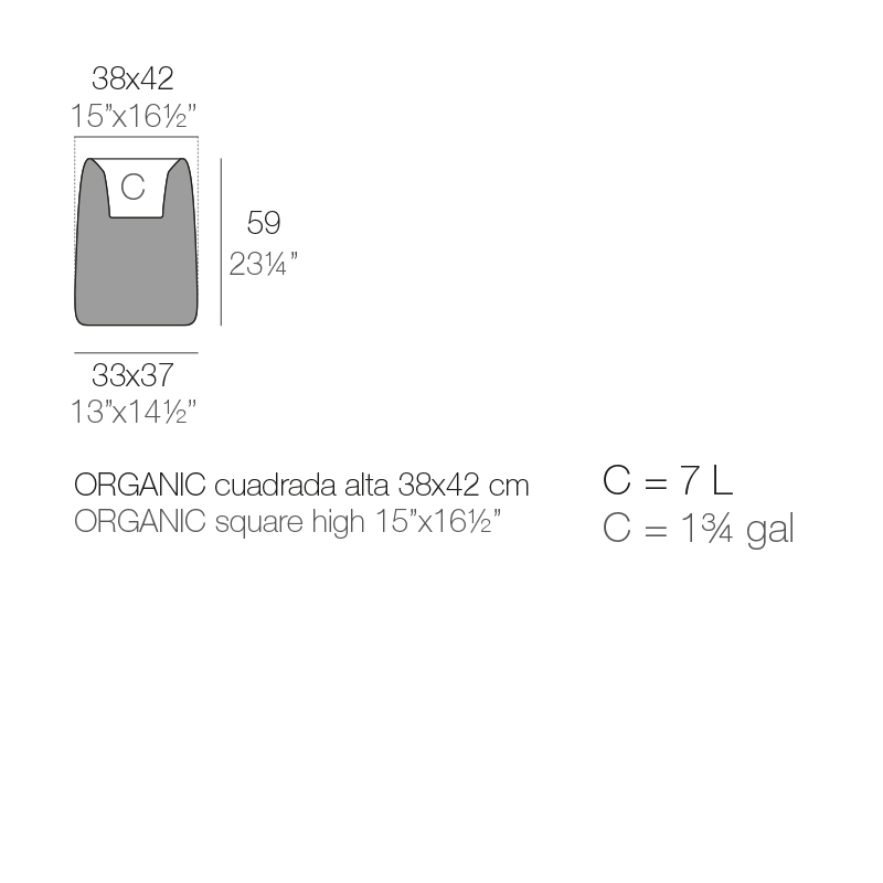 ORGANIC HIGH SQUARE PLANTER 38X42X57
