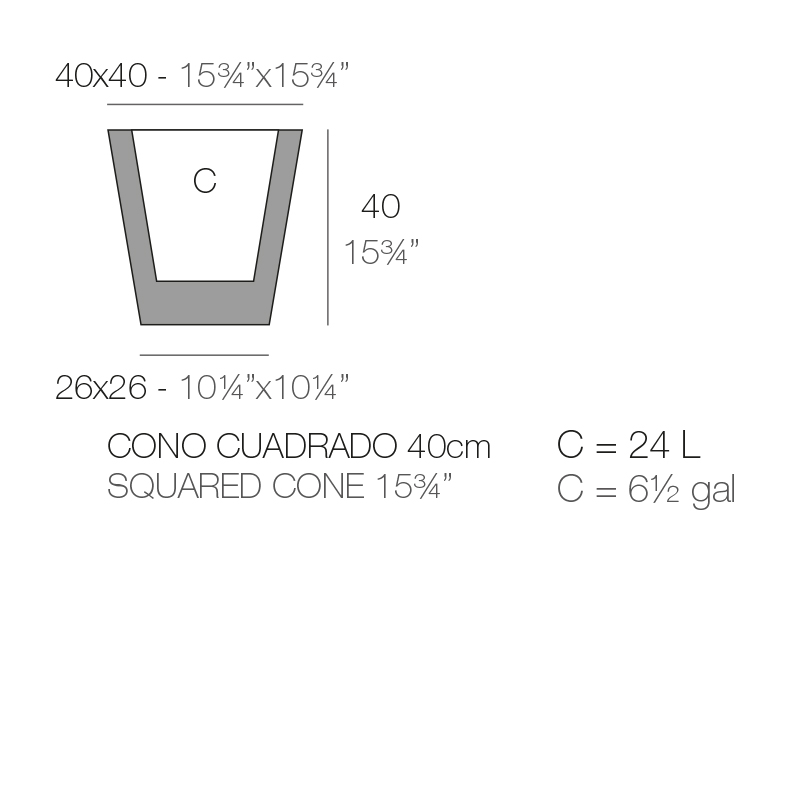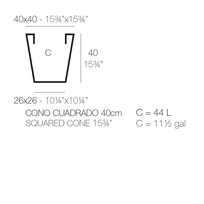 SQUARE CONE POT 40X40X40