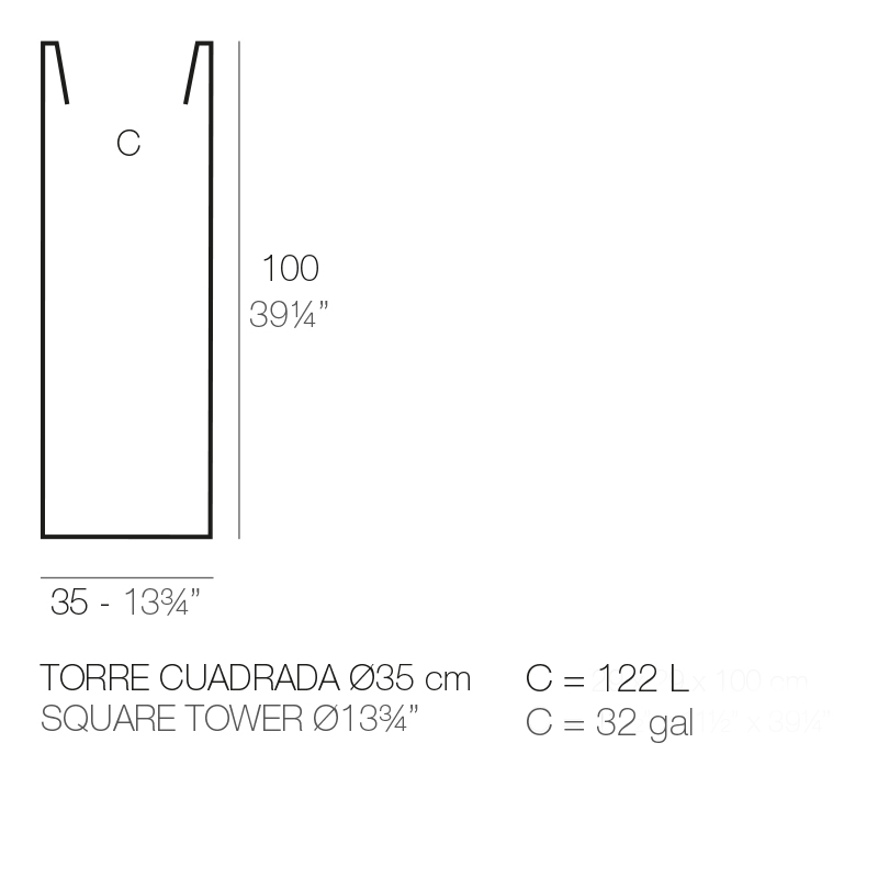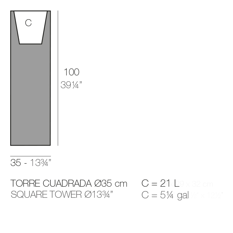SQUARE TOWER POT 35X35X100