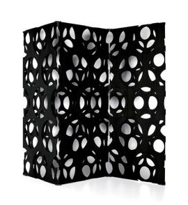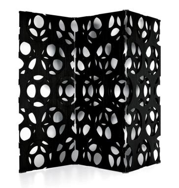 划分,隐藏,保护,丰富,装饰 - 这些都是屏幕的功能。由三个铰链板组成,每个面板由两到三块板组成,并装饰有不同直径的孔。