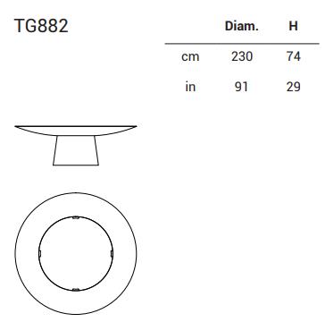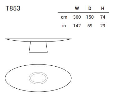 表顶部和下计数器完全由形状胶合板制成;底座的胶合板内部结构也覆盖着弯曲胶合板中的圆锥体。 漆面、底面和底座:哑光、光泽聚酯或液态金属涂漆。