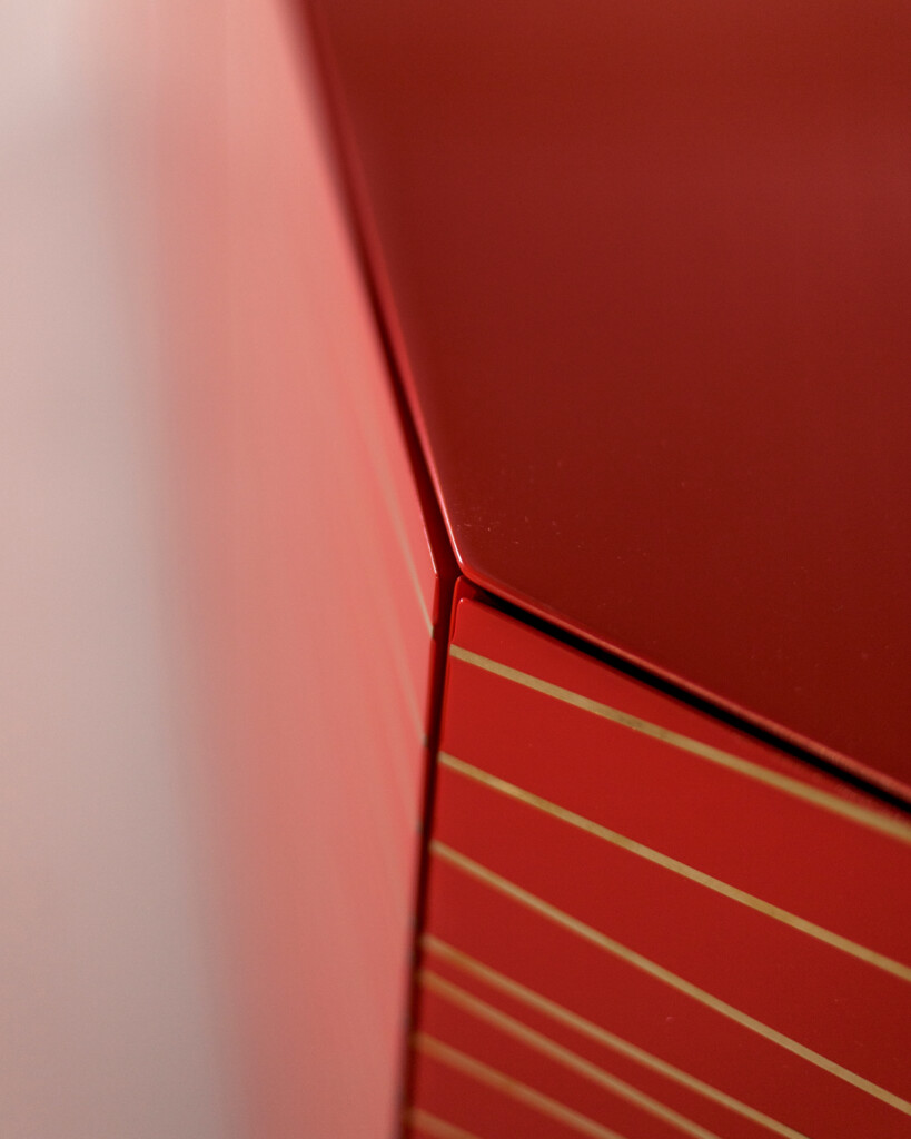 Trapezio诞生于其名称的几何形状的基础上,这是一个具有不寻常形状和巨大存在的容器,由于斜面,看起来轻盈,相称和和谐。 这件家具的丰富性和特殊性不仅体现在体积上,还体现在精致的黄铜线嵌件上,其设计是对木纹的清晰参考。这种装饰与家具的物质替出现,赋予了该物品新的重要性,指的是意大利橱柜制造商学校和 boulle 传统的家具。