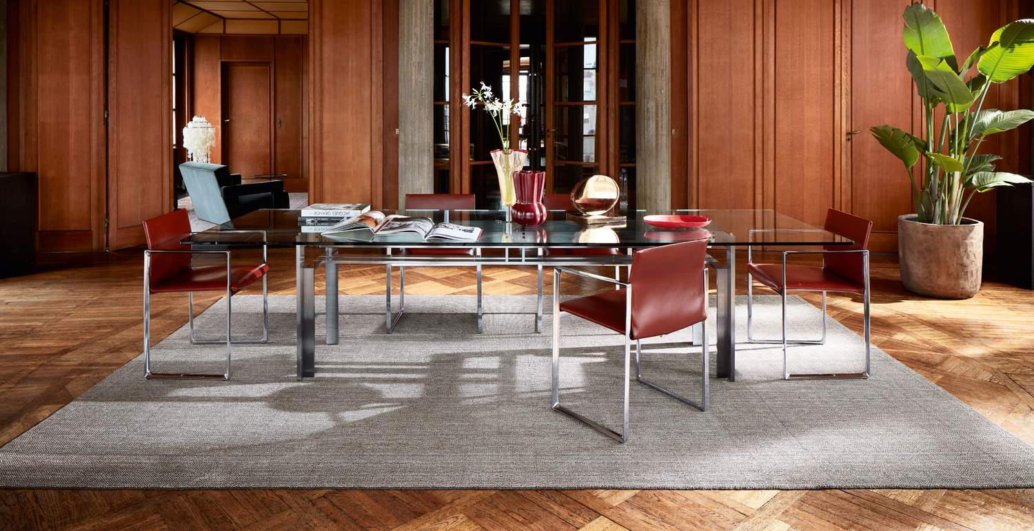 珍贵而现代的 Paglietta 地毯诞生于黄麻等传统纤维与闪亮纱线的结合。与这种技术纱线相关的手工编织的独特性和不规则性创造了一种完美的组合,并赋予触感舒适的服装以生命。