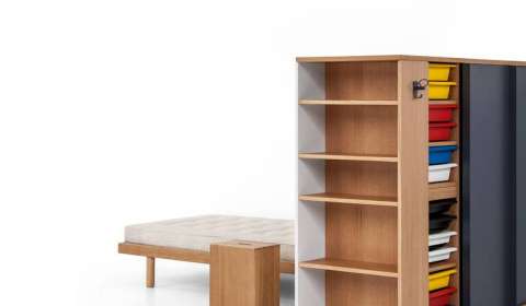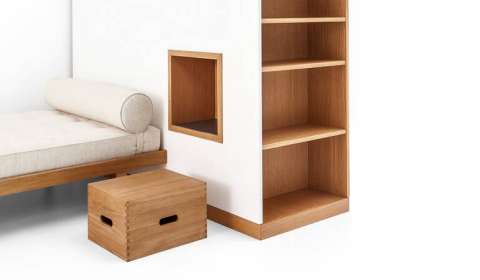 一间卧室,忠实地重建了 1959 年在巴黎国际大学城落成的 Maison du Brésil 的房间。