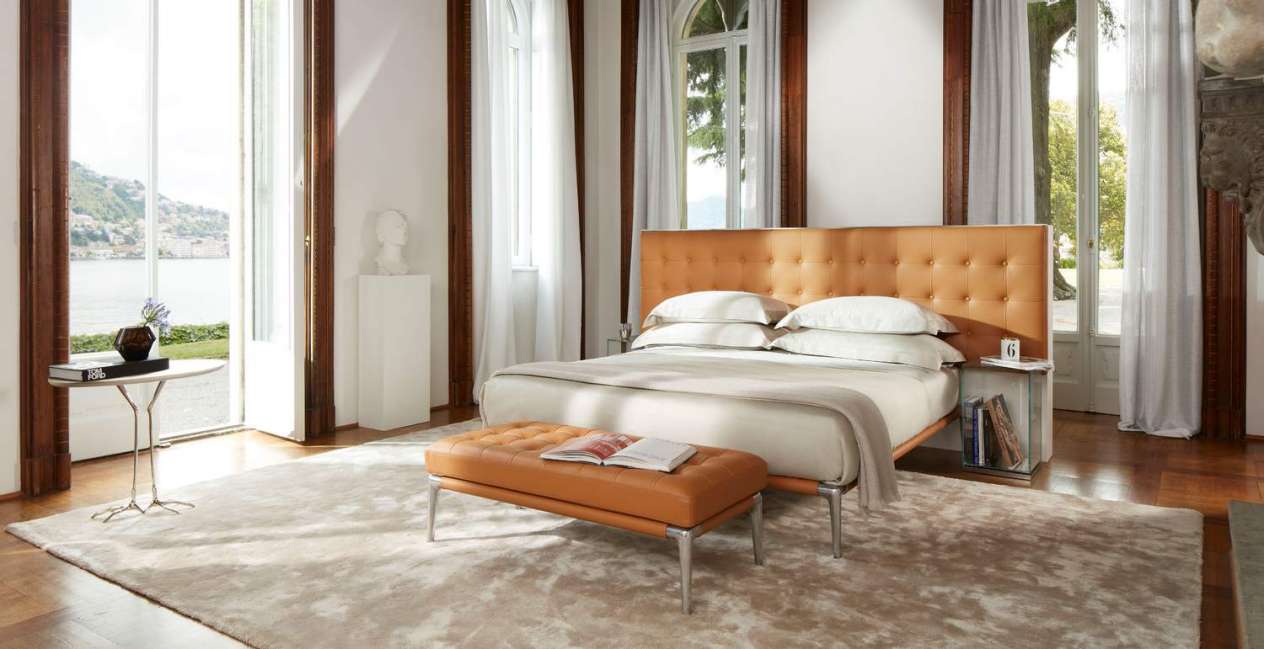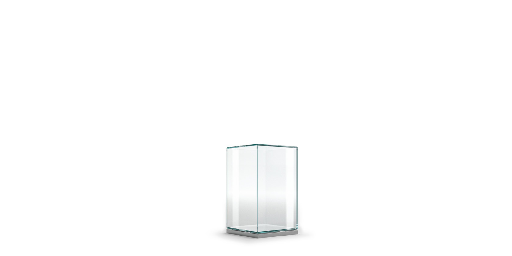 这款玻璃床头柜的前开口暗示了床边和储物柜的多功能用途,可与双人床和同一系列的设计长凳相结合。