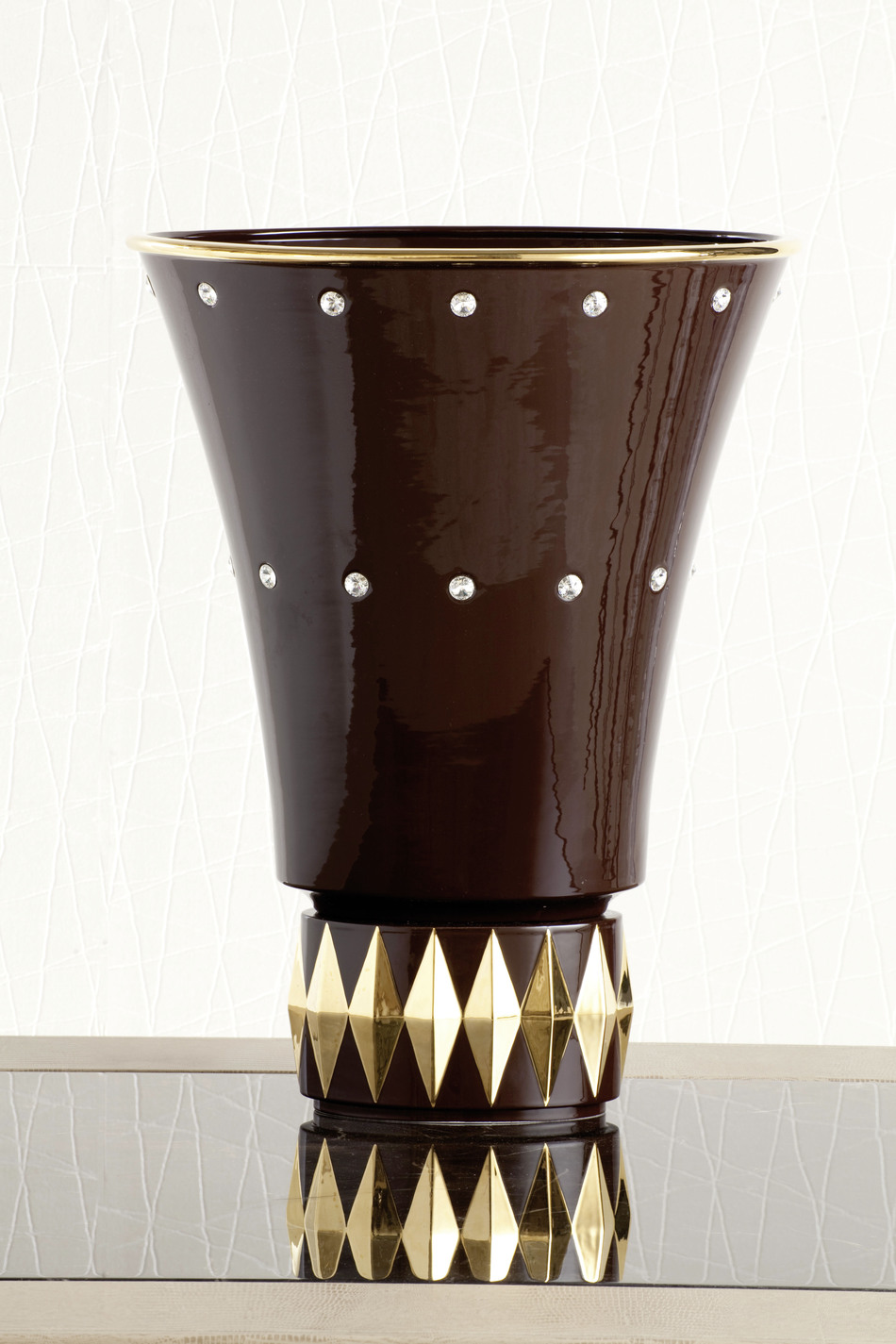 陶瓷花瓶,棕色和24k金饰面的组合。