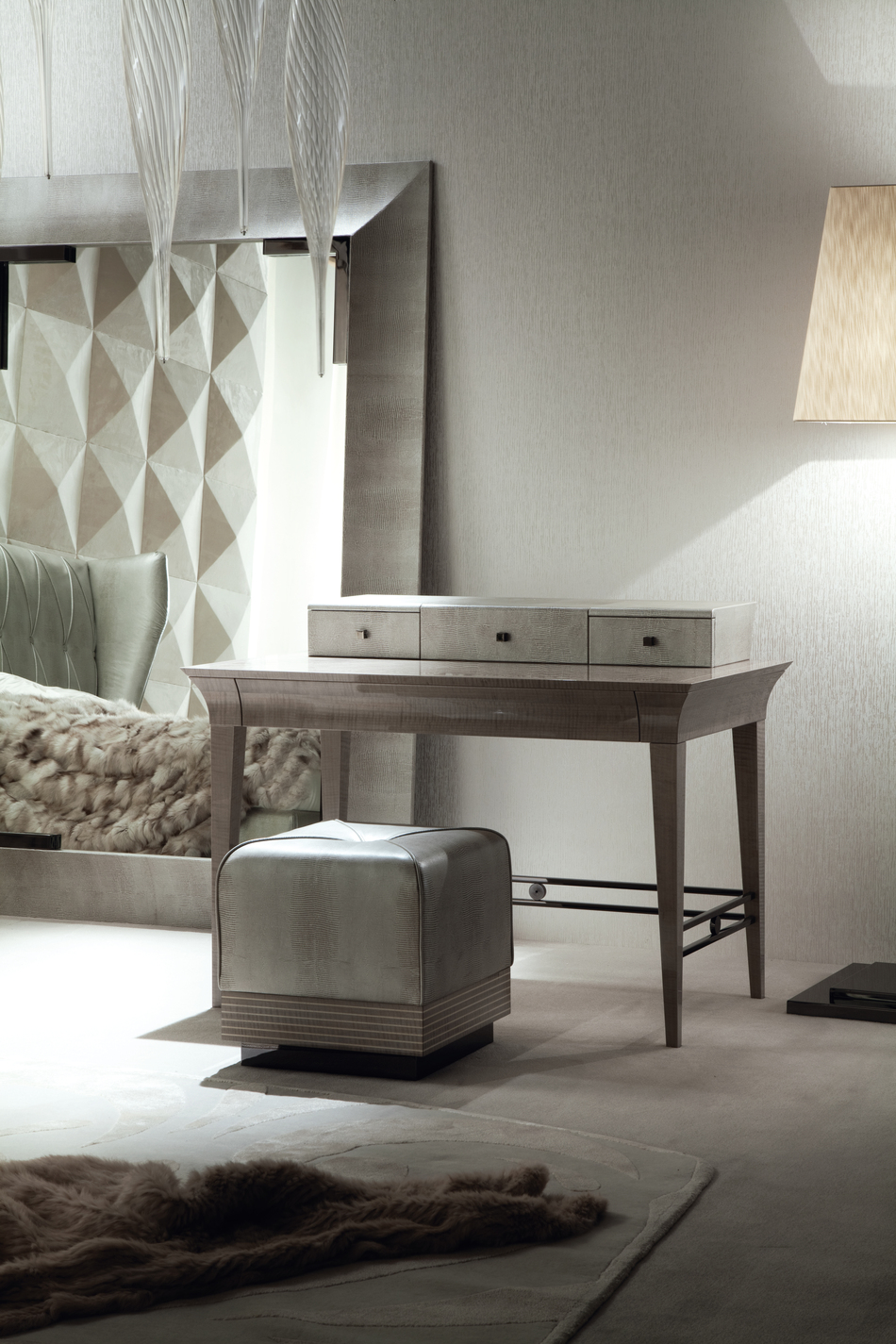 地板镜采用银色蜥蜴纹印花皮革和不锈钢装饰,采用深灰色饰面。