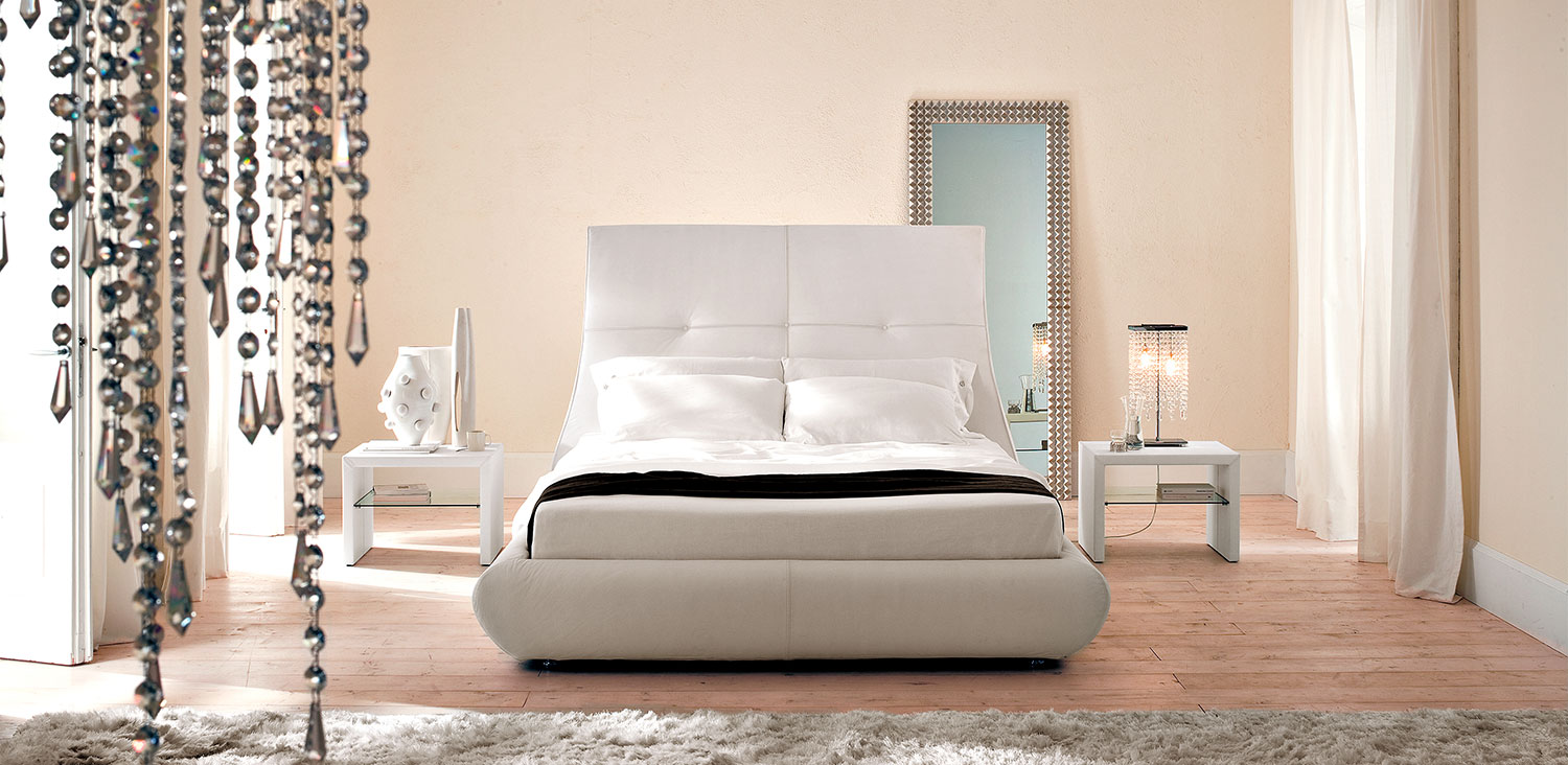 带有软垫床头板和框架的床,根据样品卡采用织物、合成正绒面革、微型正绒面革、合成皮革或软皮革覆盖。包括板条。可选:带容器的上拉板条。