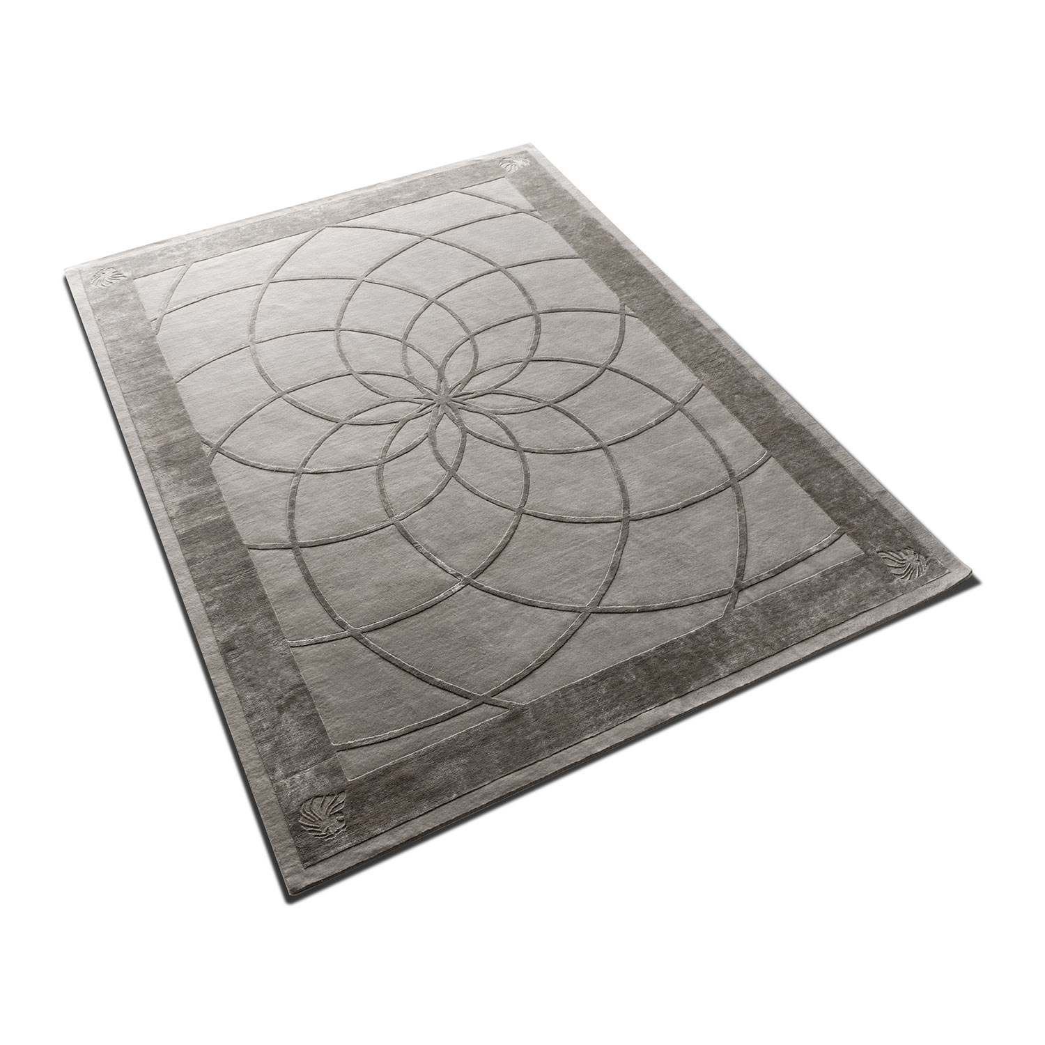 手工打结的米色地毯,羊毛和100%真丝的组合。定制。