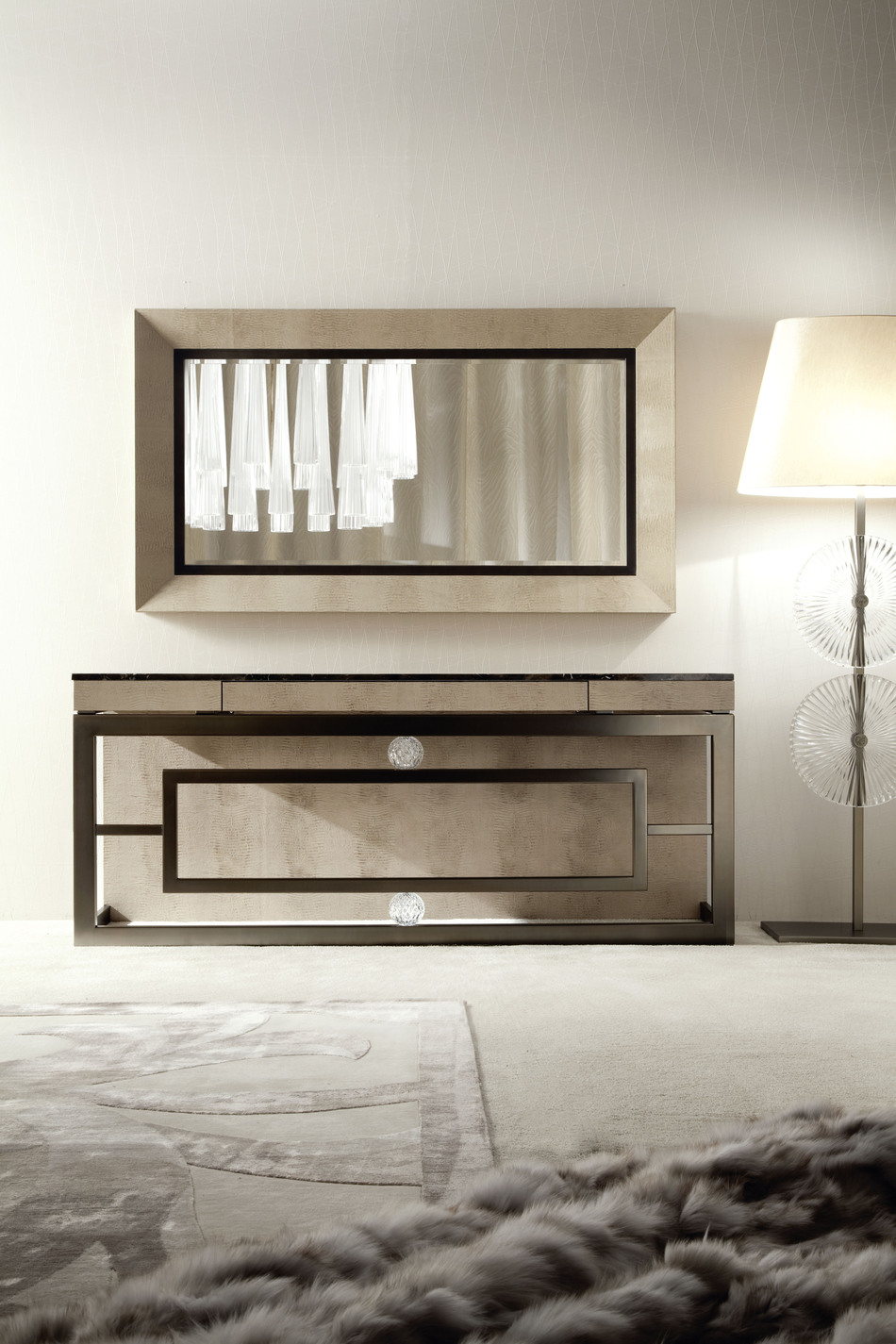 镜子结合了犰狳印花皮革和古铜黄铜细节。