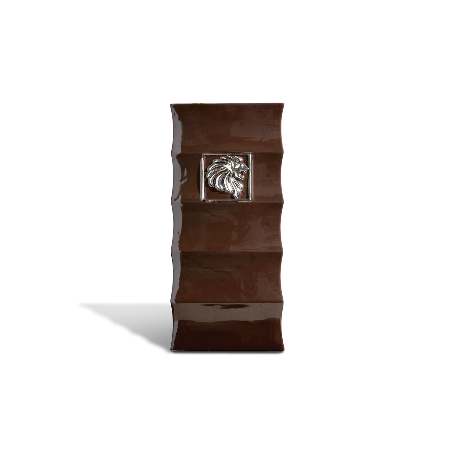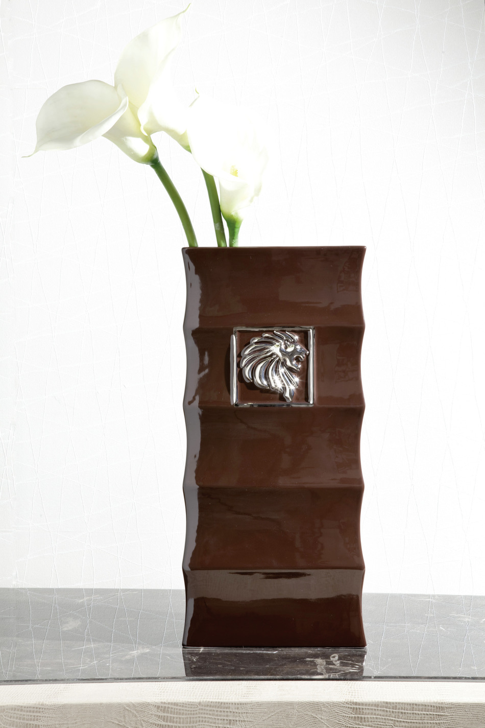 棕色陶瓷花瓶,铂金饰面的"Giorgio系列"标志。