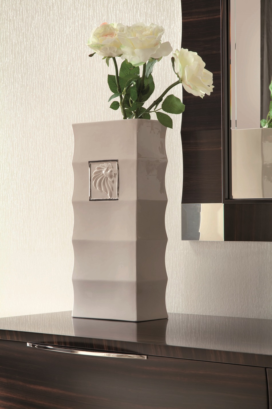 米色陶瓷花瓶,铂金饰面"Giorgio系列"标志。