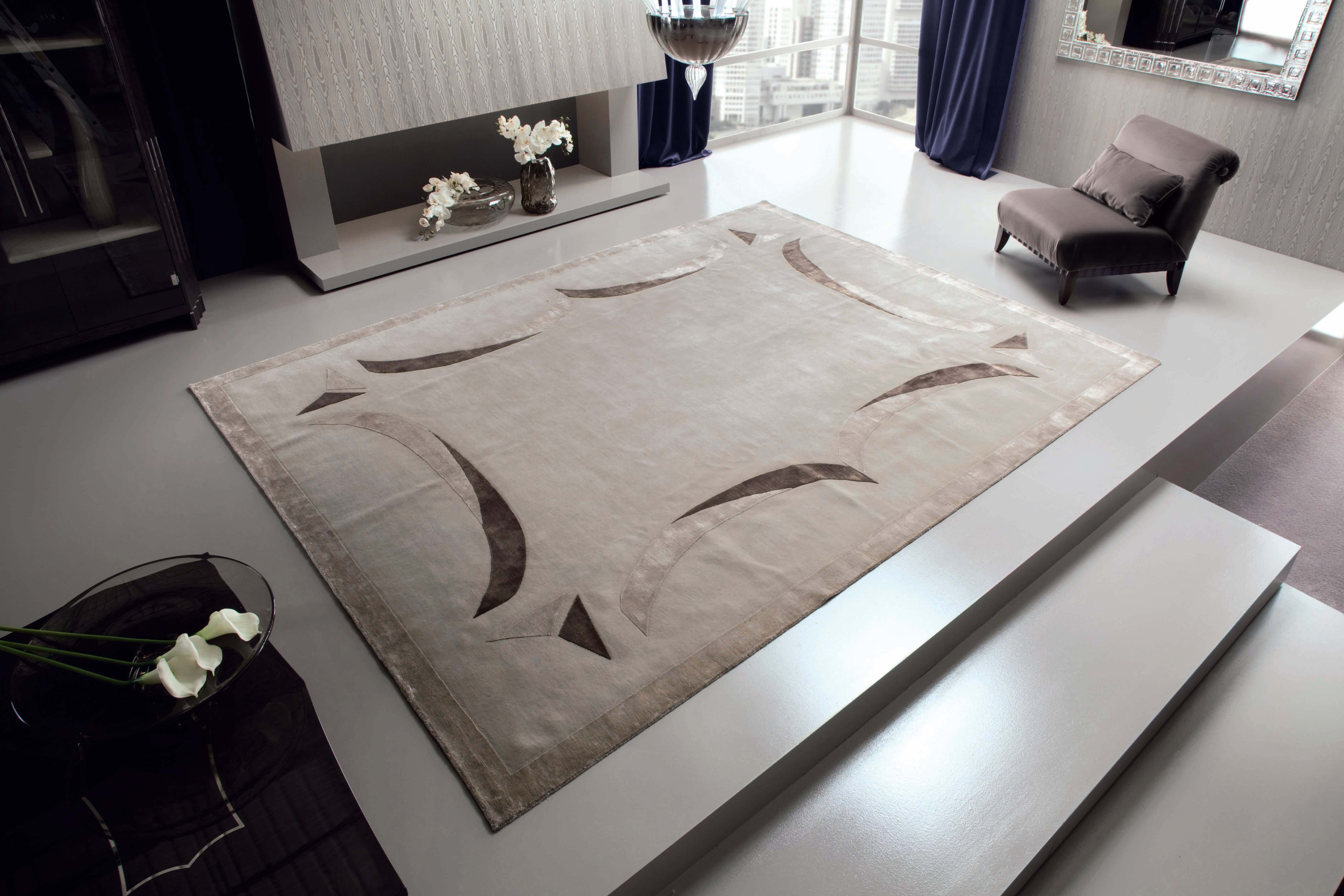 羊毛和100%丝绸组合的手工簇绒地毯。
