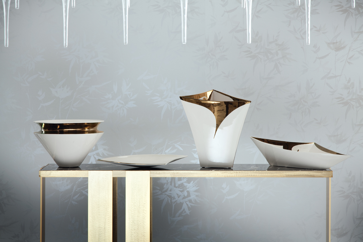 陶瓷雕塑/花瓶,搭配白色和24K金饰面