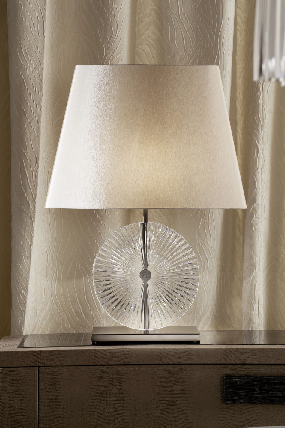 玻璃雕塑灯由威尼斯"穆拉诺"吹制玻璃和铬不锈钢组合而成。金色丝绸的阴影。