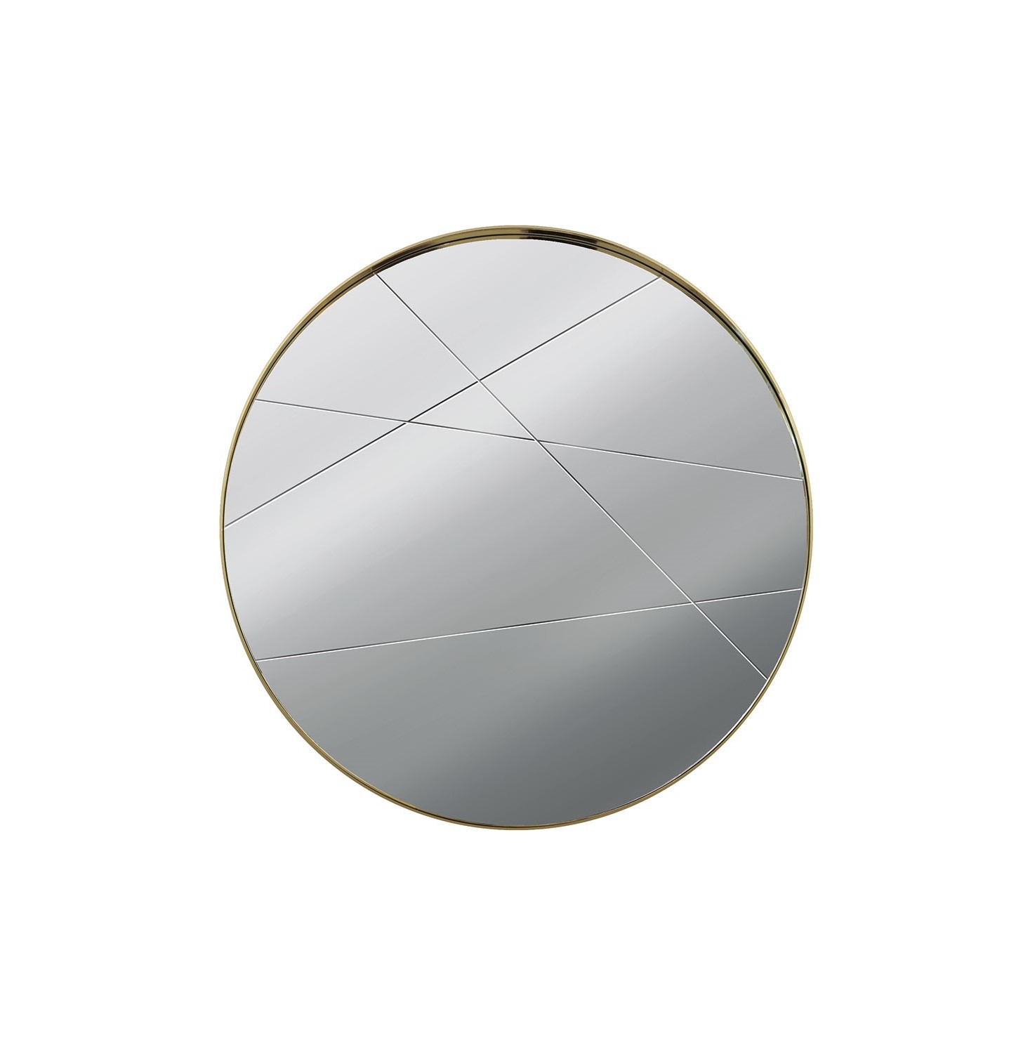 圆形镜子,浅金色镀铬不锈钢框架。镶嵌镜与钢化玻璃。