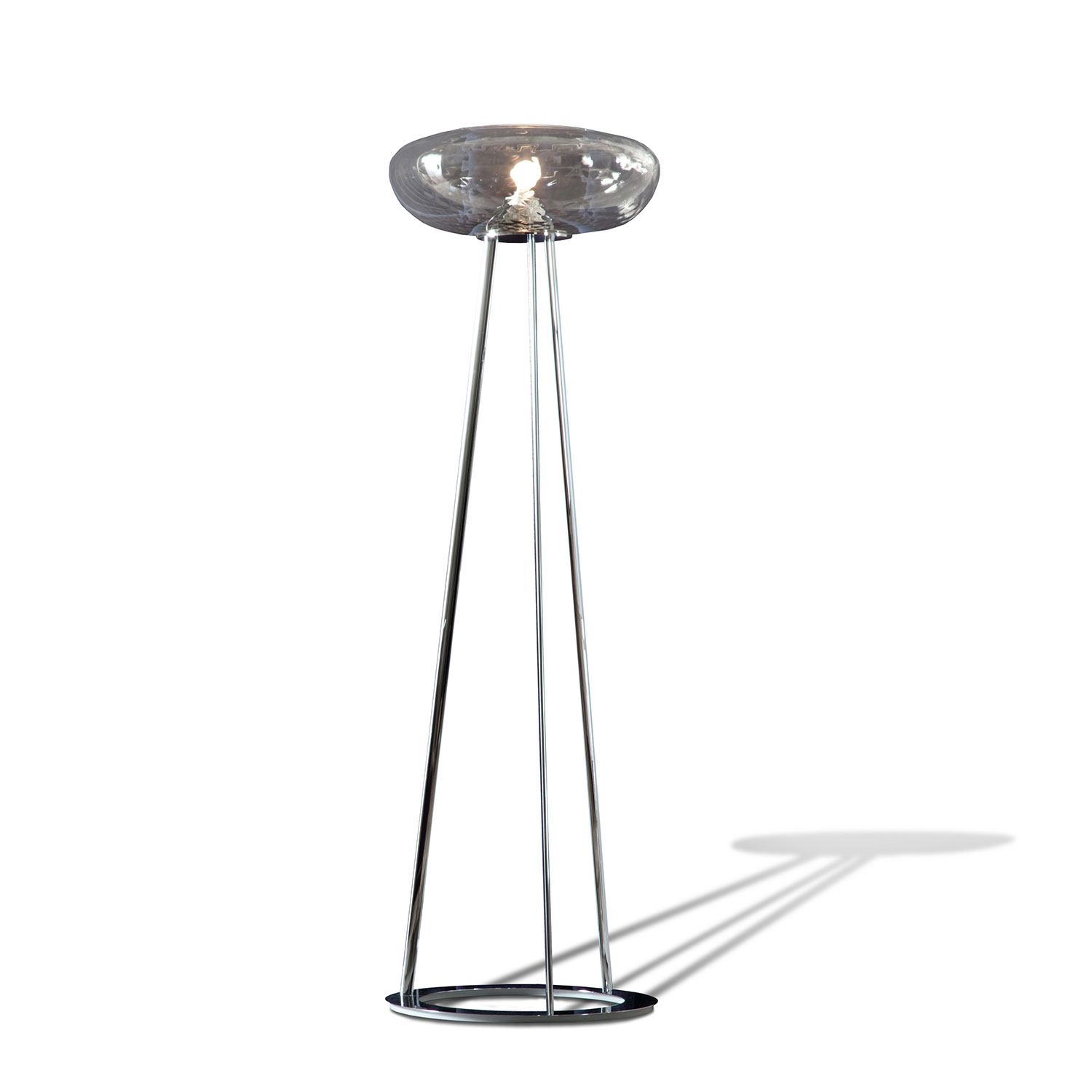 落地灯底座采用铬不锈钢制成,顶部采用威尼斯"Murano"深色吹制玻璃。