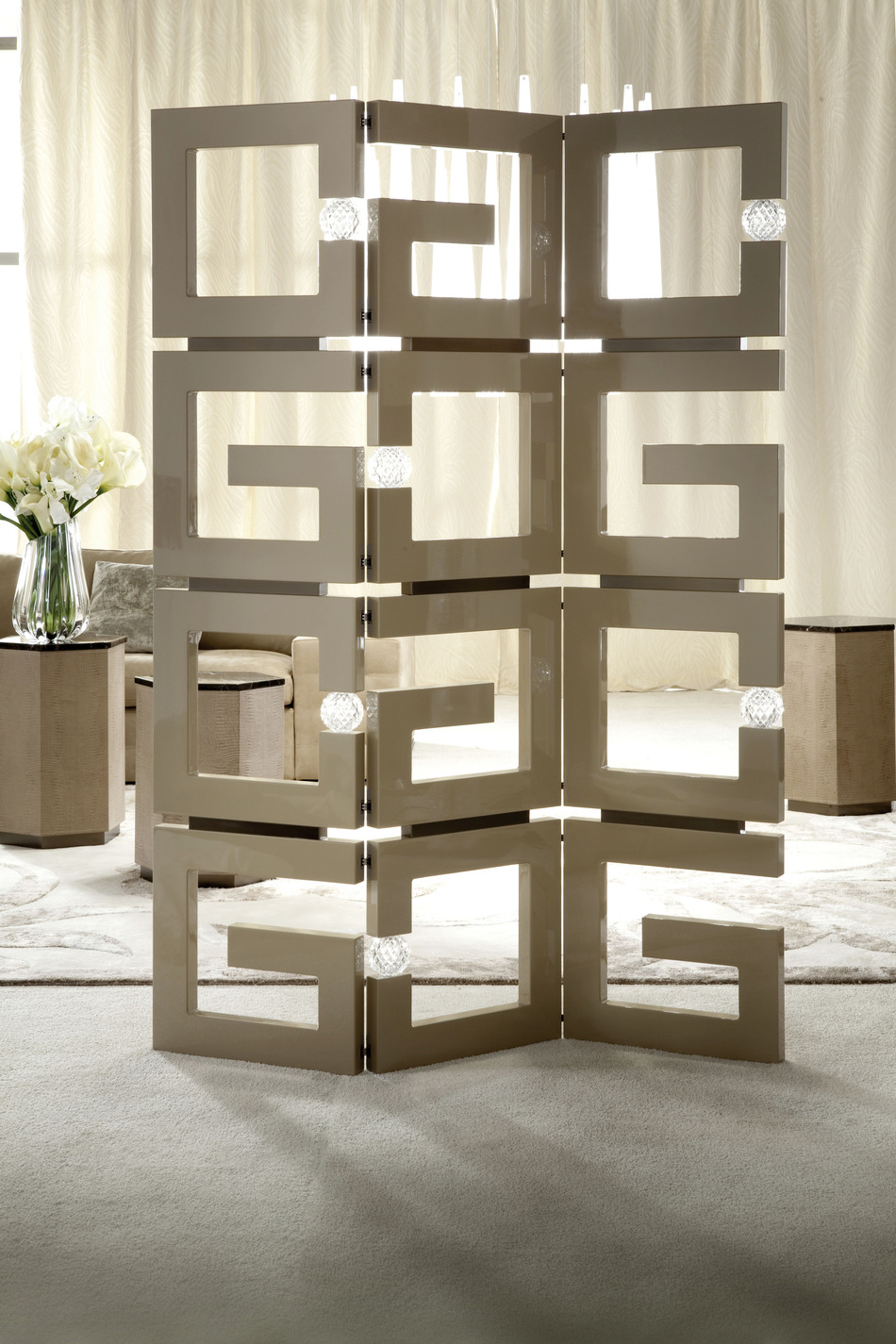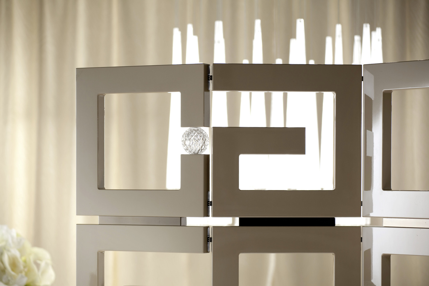 高光聚酯漆,古铜黄铜和"Murano"水晶球组合的截面网。
