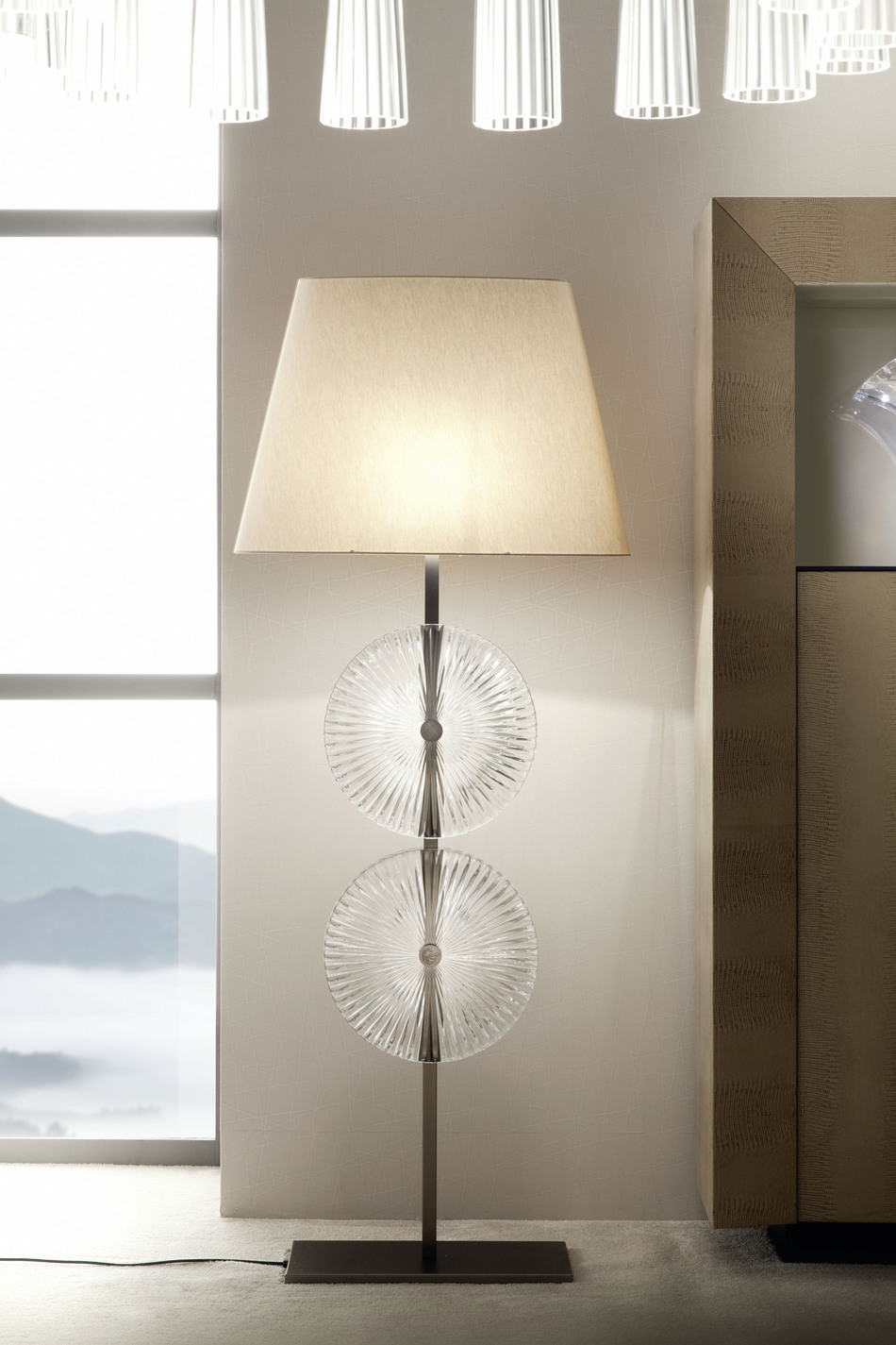 玻璃雕塑 落地灯由威尼斯"穆拉诺"吹制玻璃和铬不锈钢组合而成。金色丝绸的阴影。