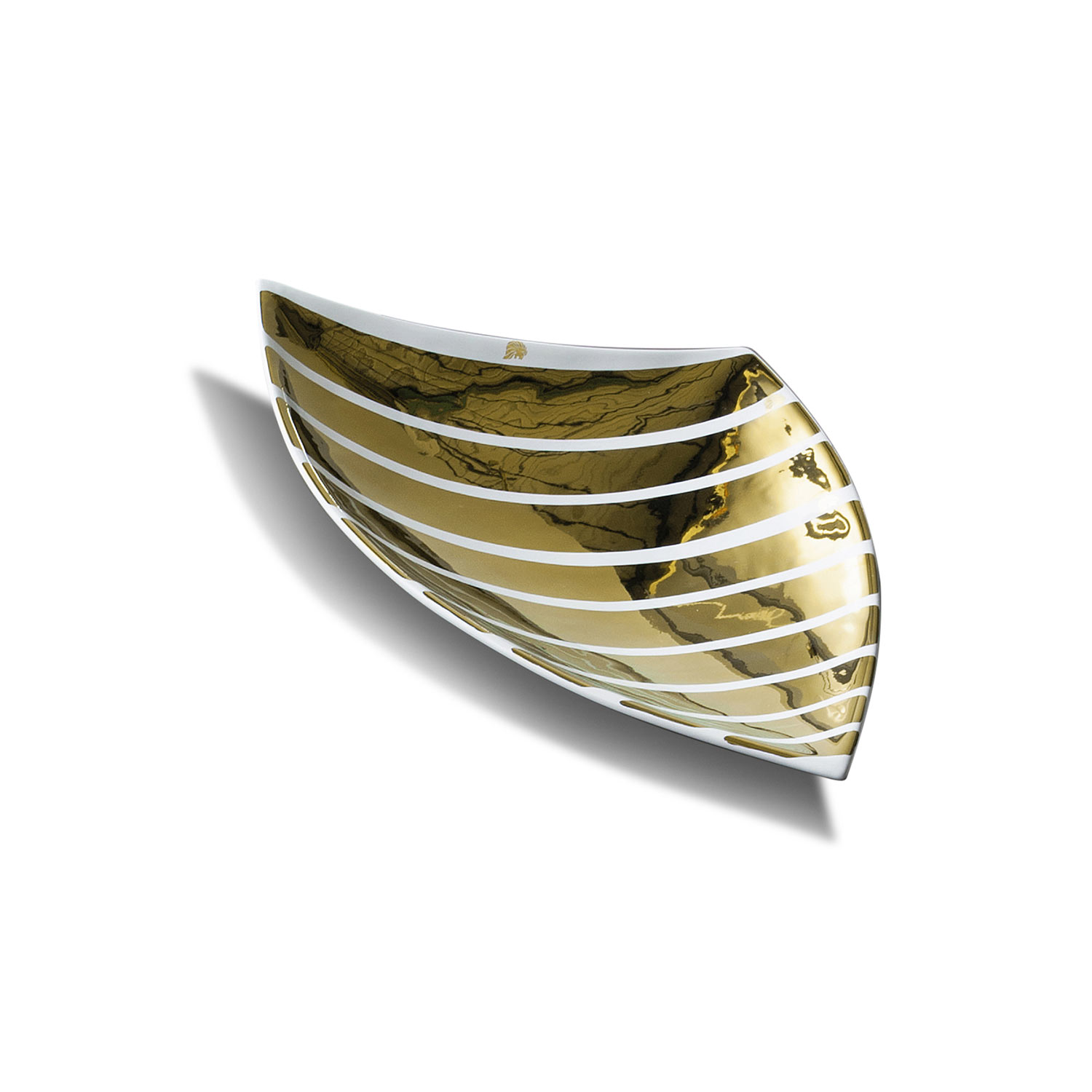 白色陶瓷中央托盘,细节采用24k金饰面。