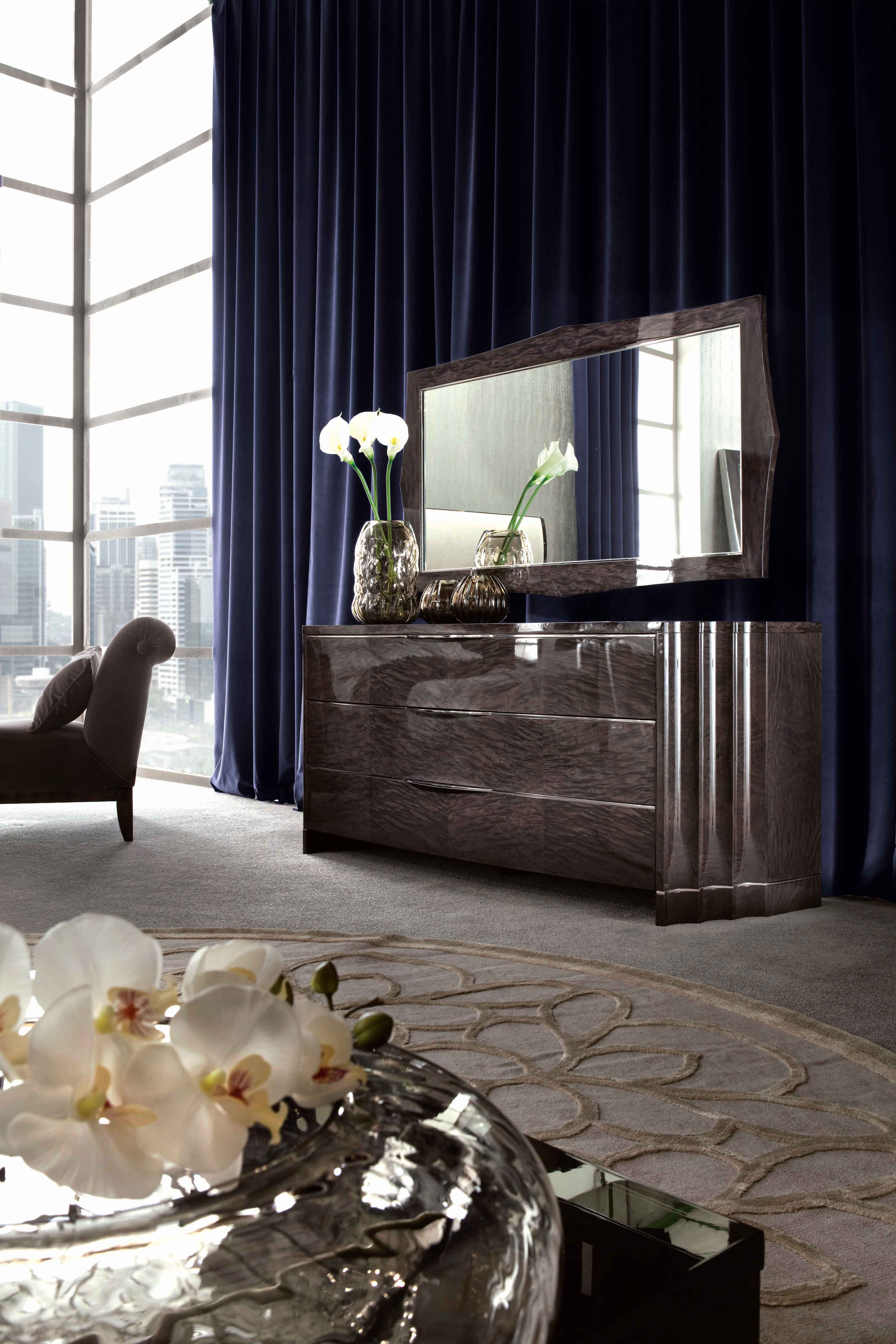 梳妆台提供高光聚酯摩卡日本塔莫毛皮贴面。