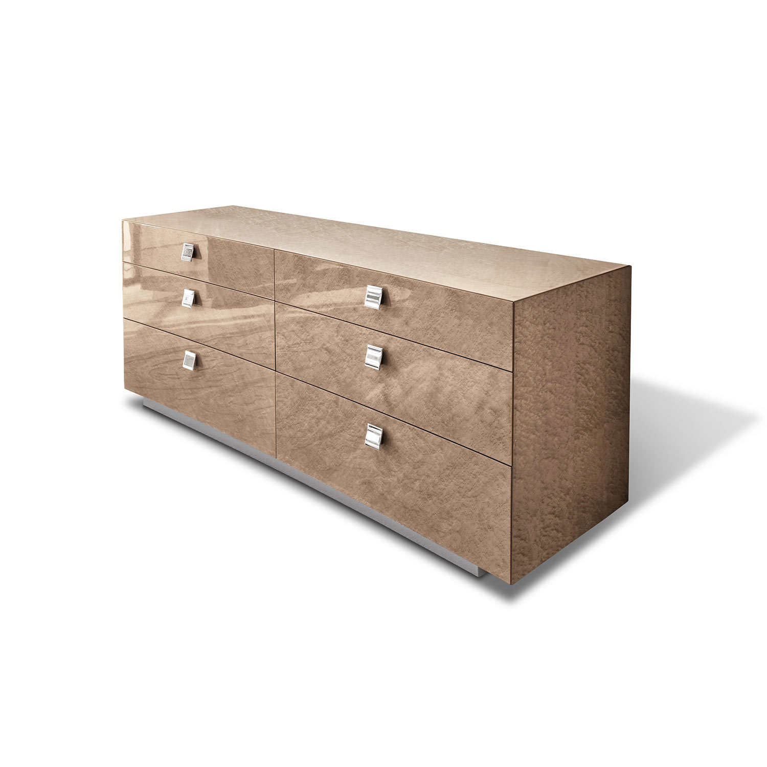 梳妆台有高光聚酯香槟鸟眼枫木贴面可供选择。镀铬不锈钢手柄和底座。