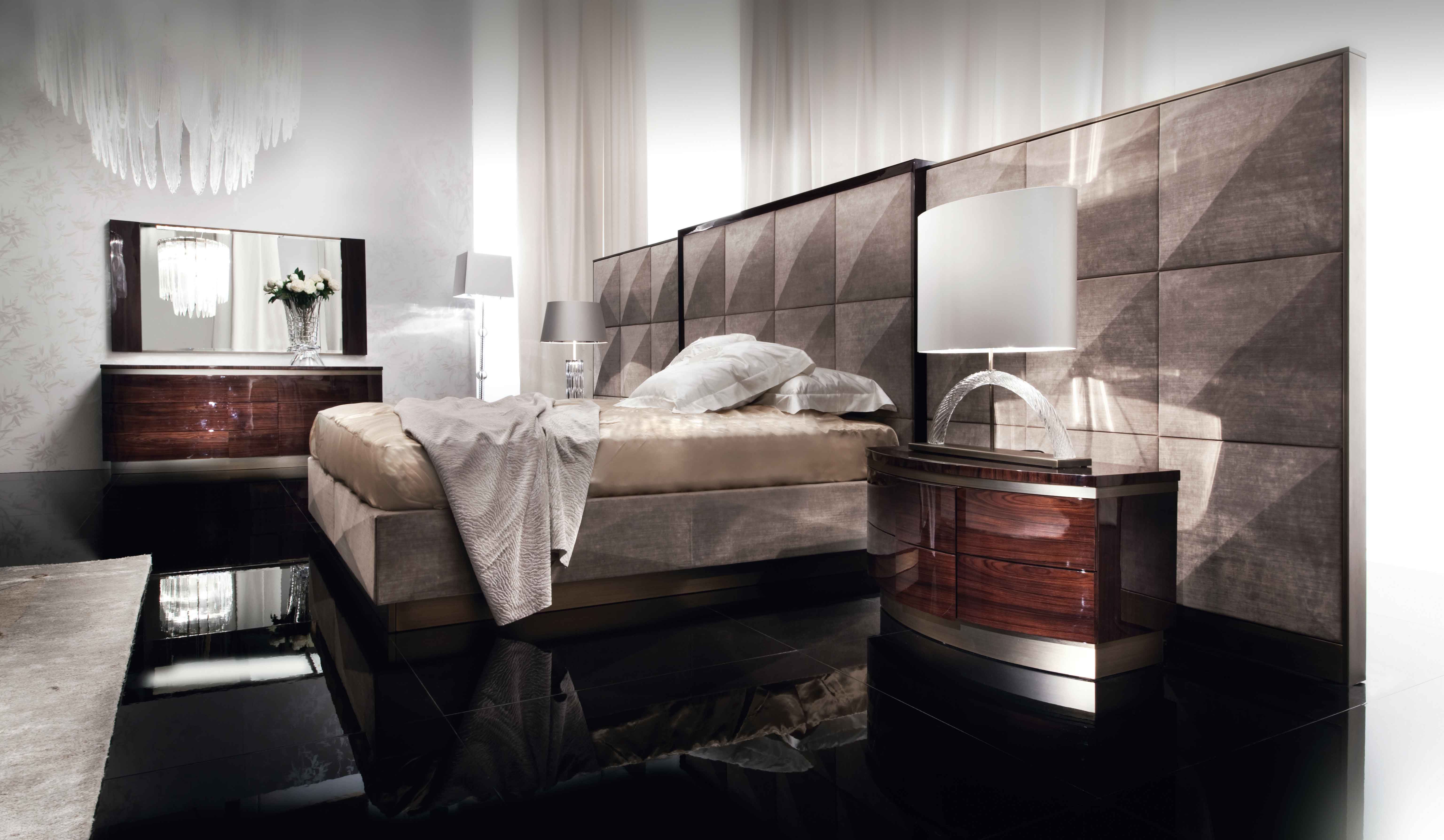 床头柜采用巴西红木贴面,高光聚酯饰面和古铜色不锈钢细节。2个全延伸抽屉,底部采用天鹅绒面料。旭日单板上衣。古铜色不锈钢底座。