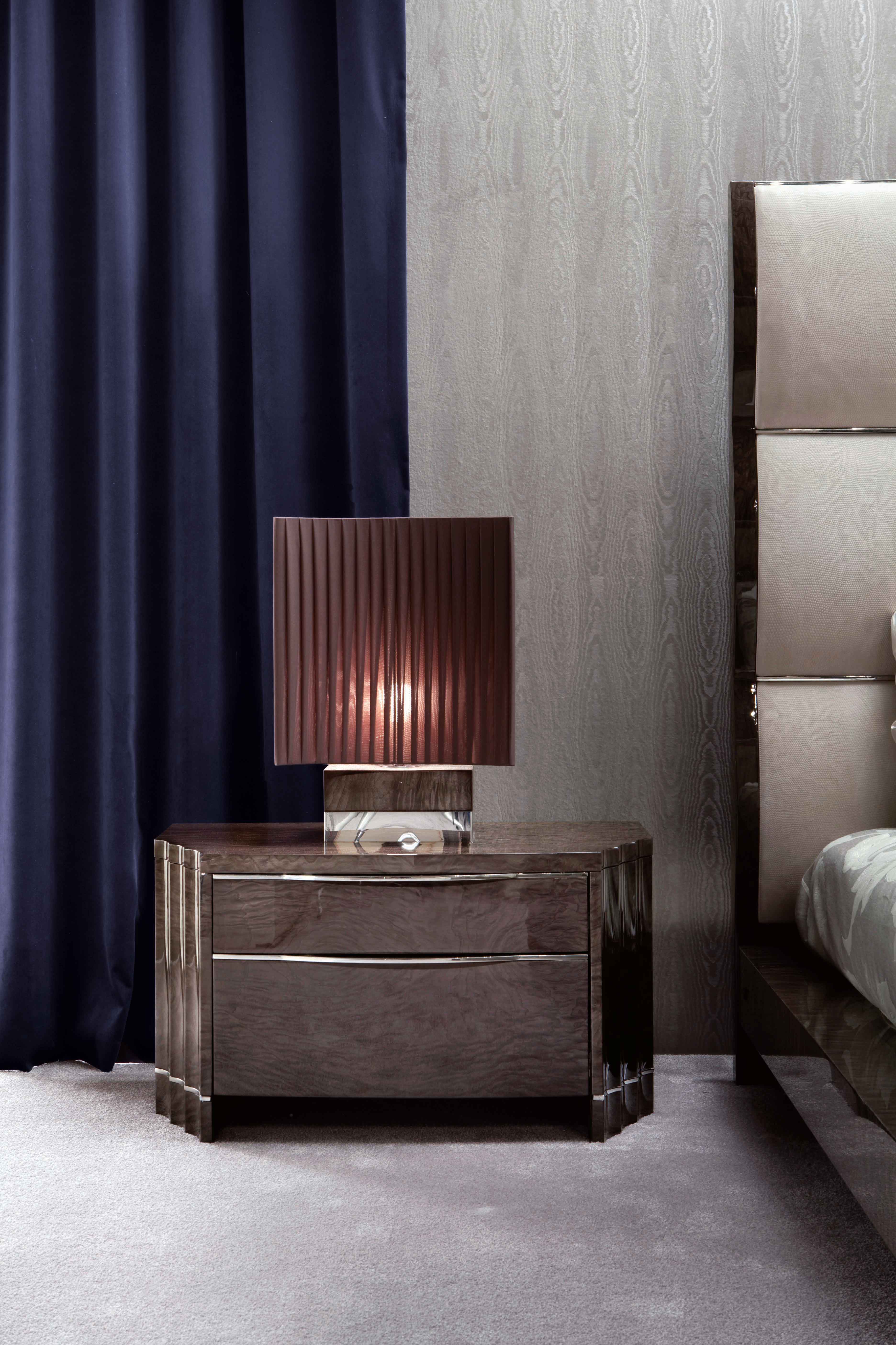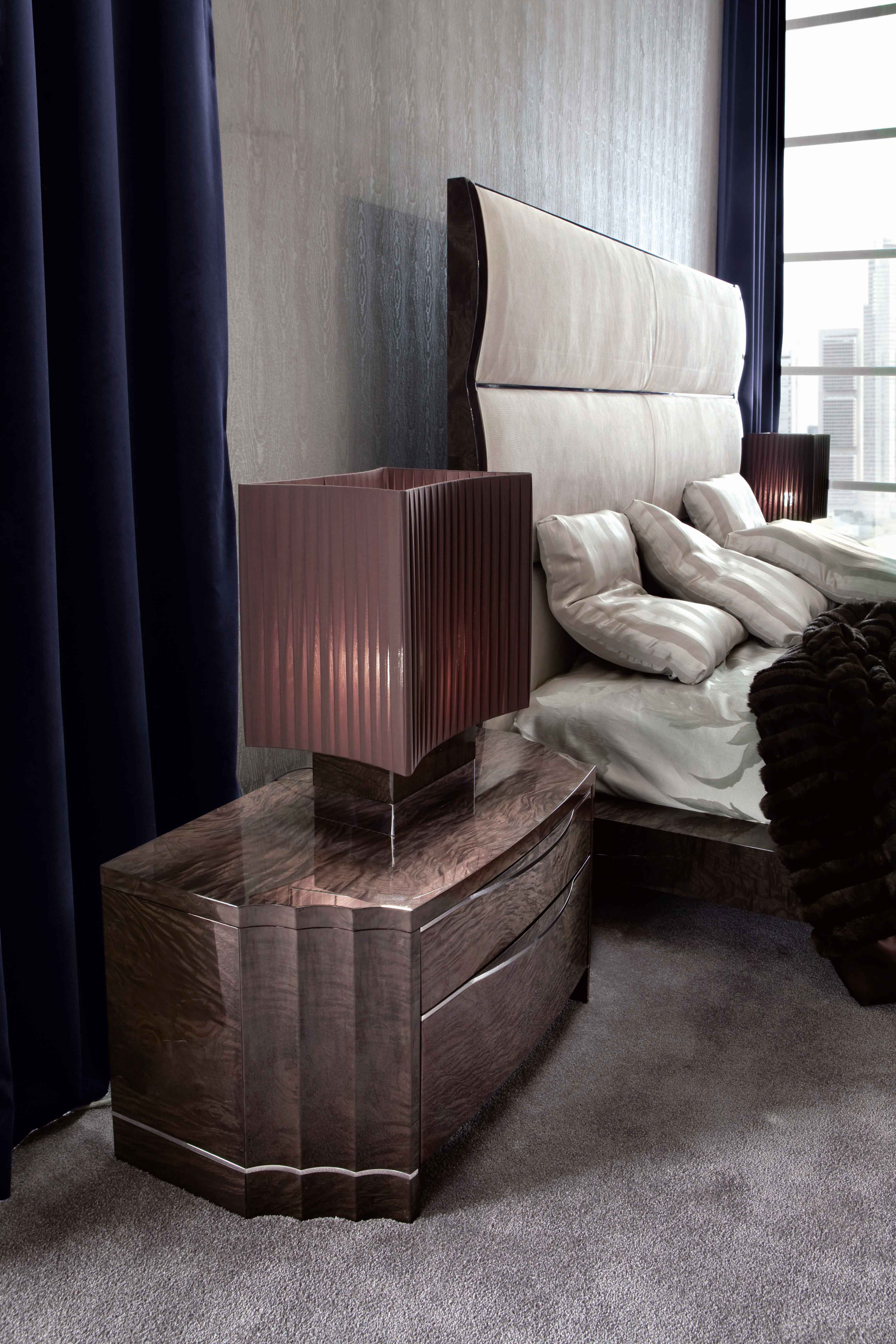 床头柜有高光聚酯摩卡日本塔莫毛皮贴面。